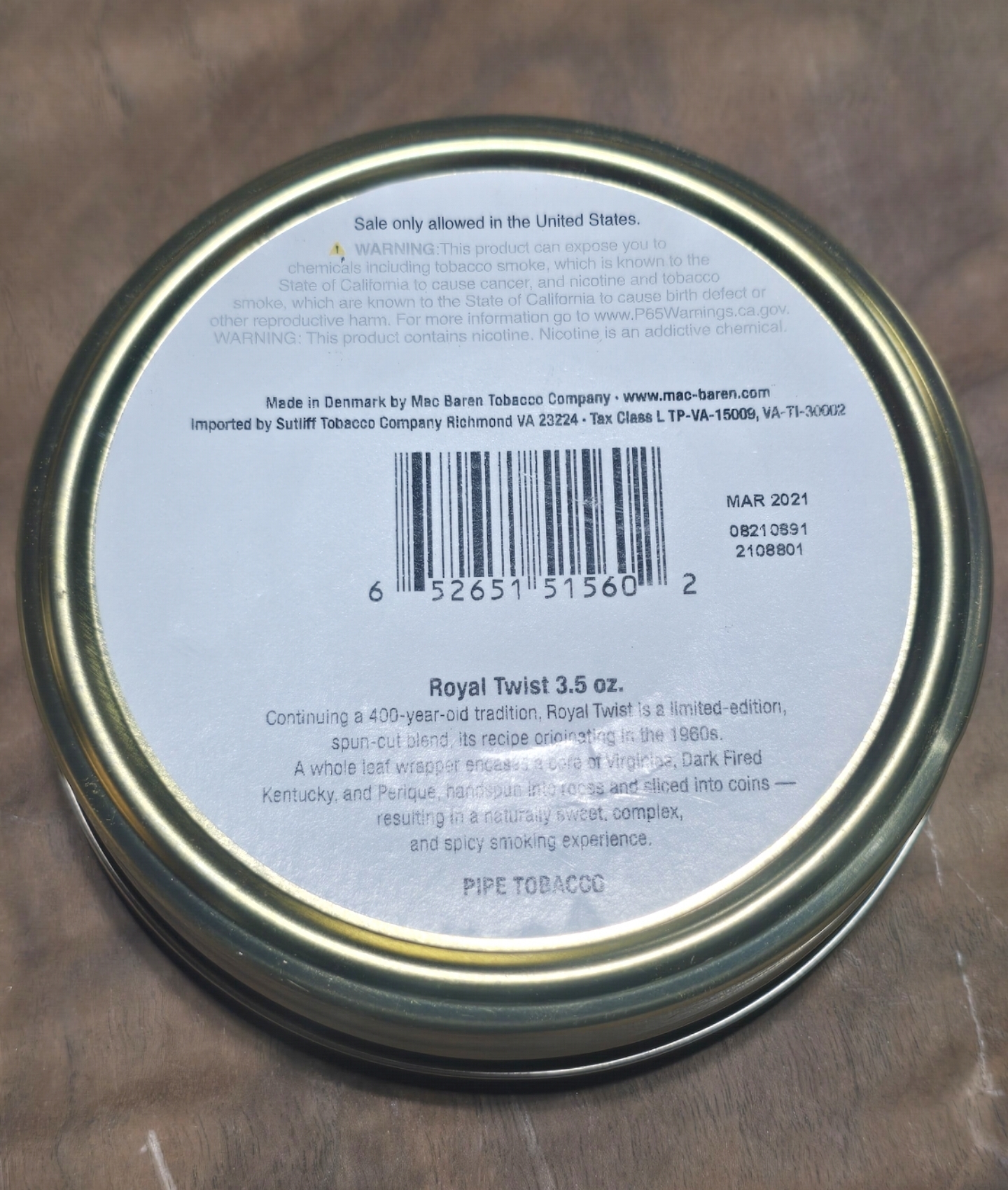1 3.5 oz tin of Mac Baren Royal Twist 2021