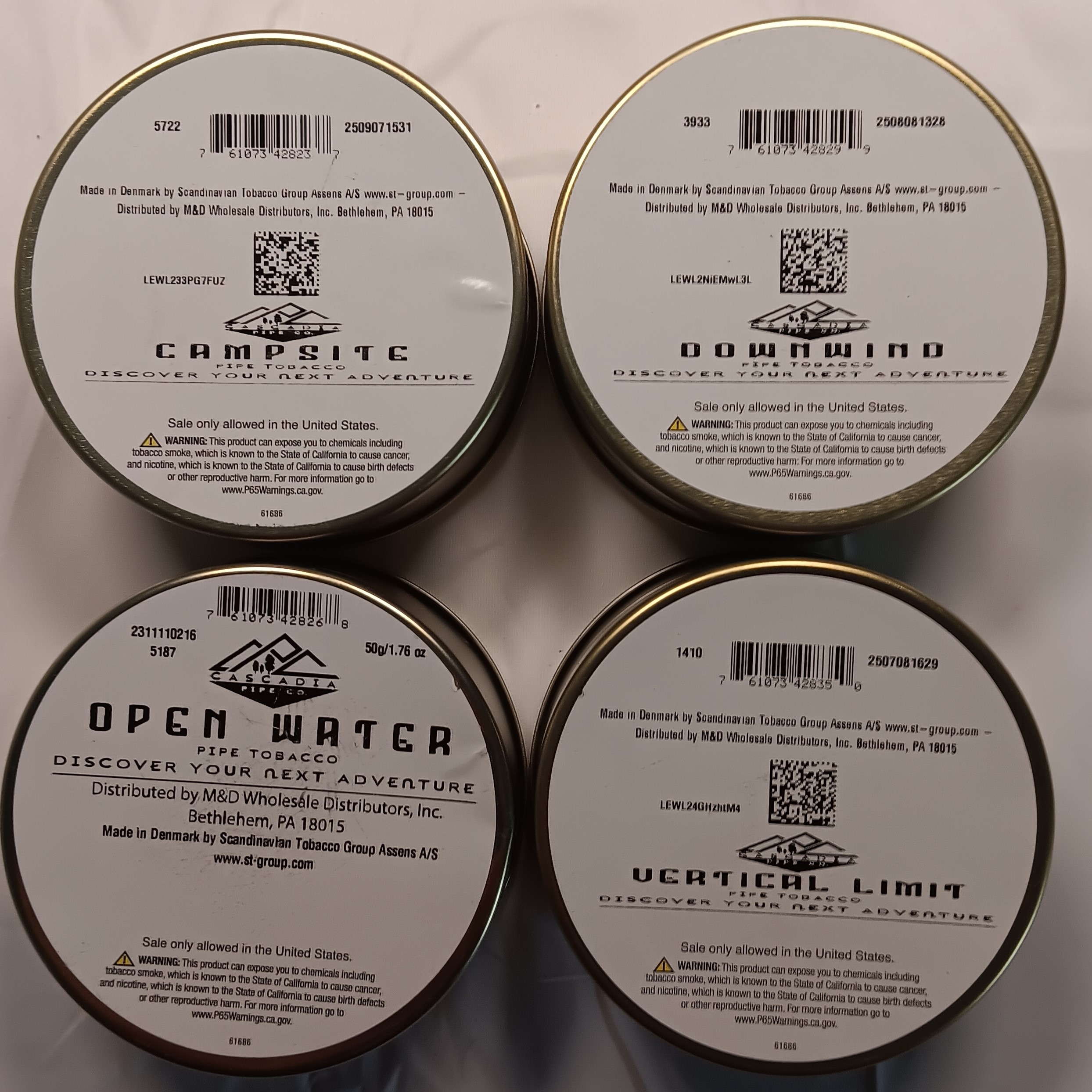 4 - Cascadia Sealed 1.76oz Tins [1-Campsite, 1-Downwind, 1-Open Water, 1-Vertical Limit]