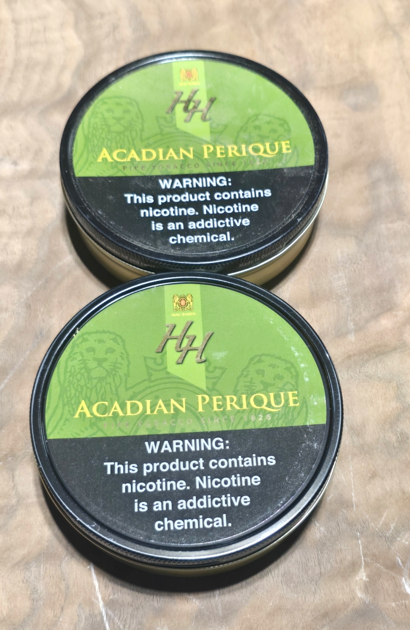 Two tins of HH Acadian Perique - 3.5oz Tin - 2020
