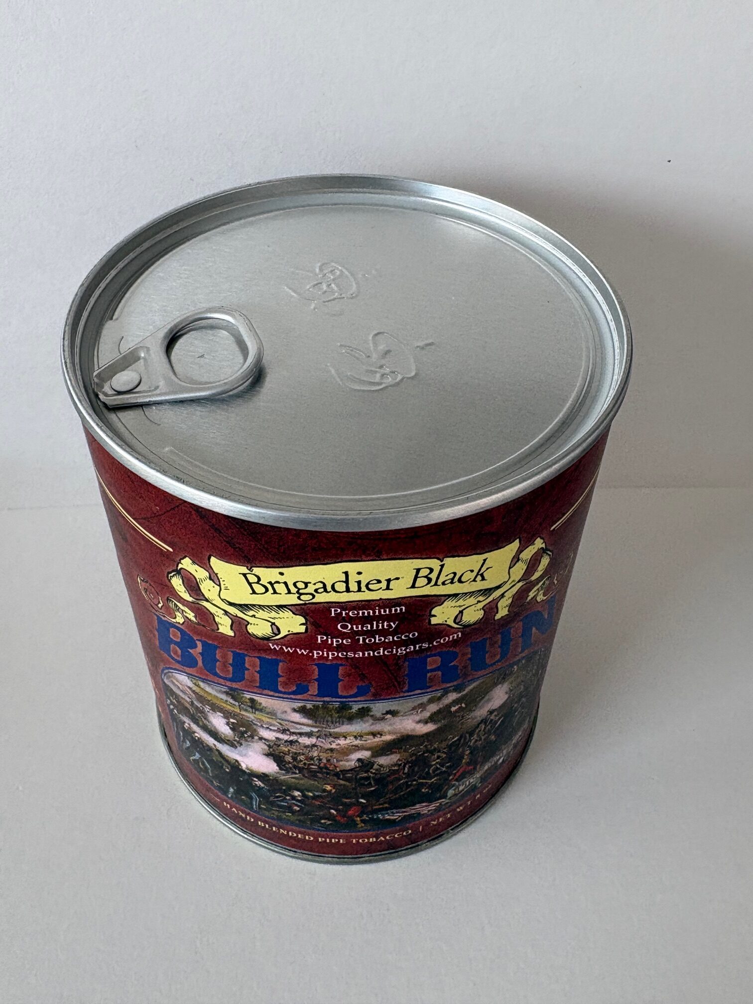 Unopened 8 ounce tin of 2014 Brigadier Black Bull Run.