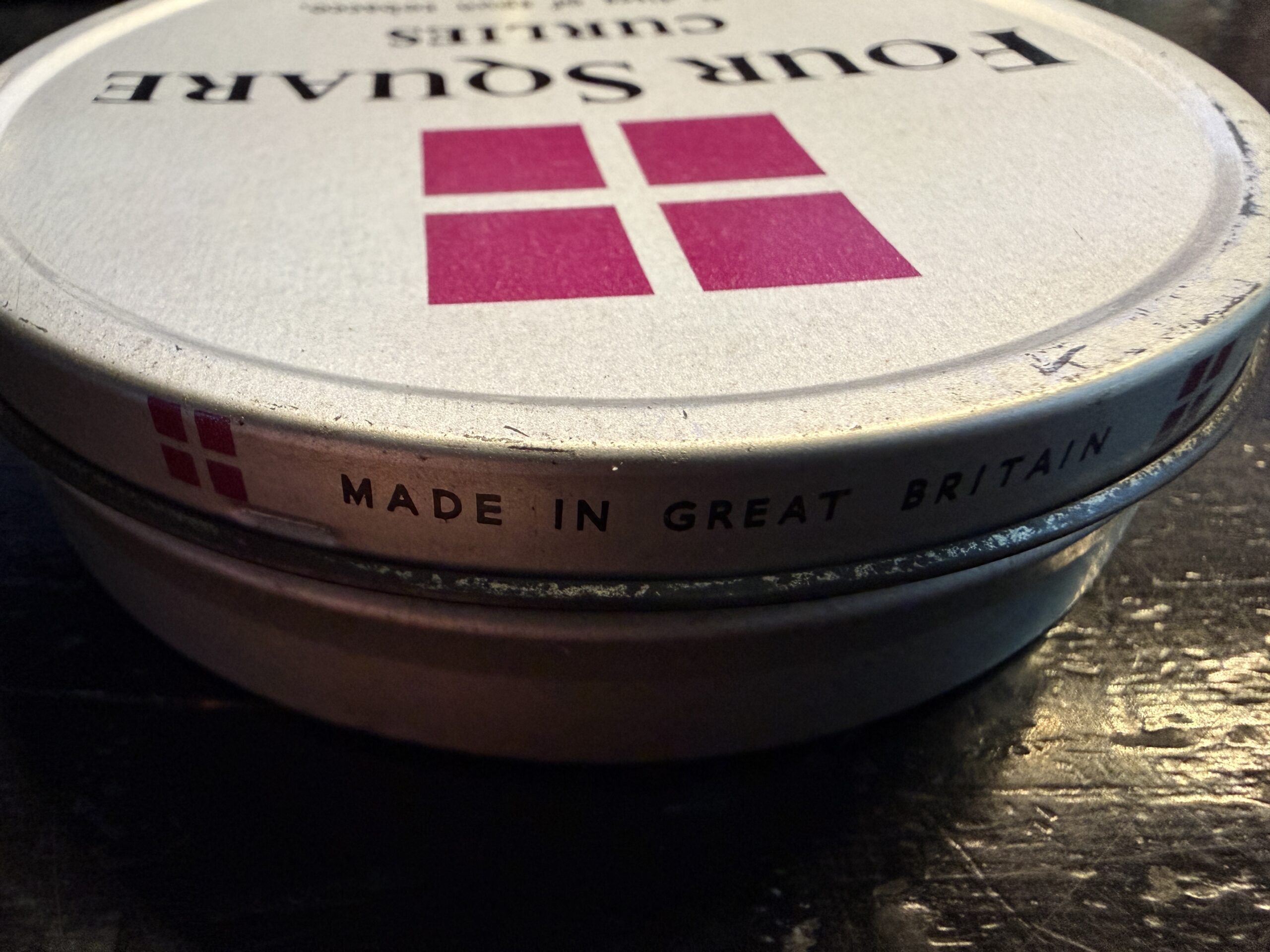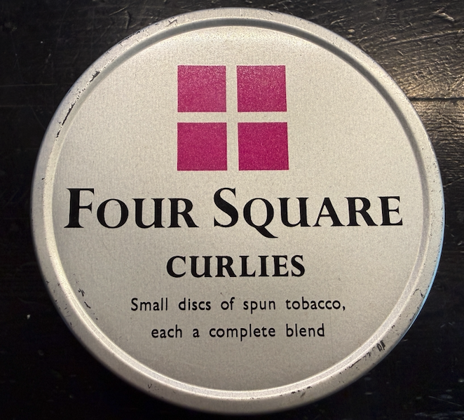 Up for auction is a 1960's era Dobie's Four Square Curlies full tin. Made in Great Britain. The tin has shelf wear. The seal is compromised, but contents are undisturbed. Will require rehydration.
