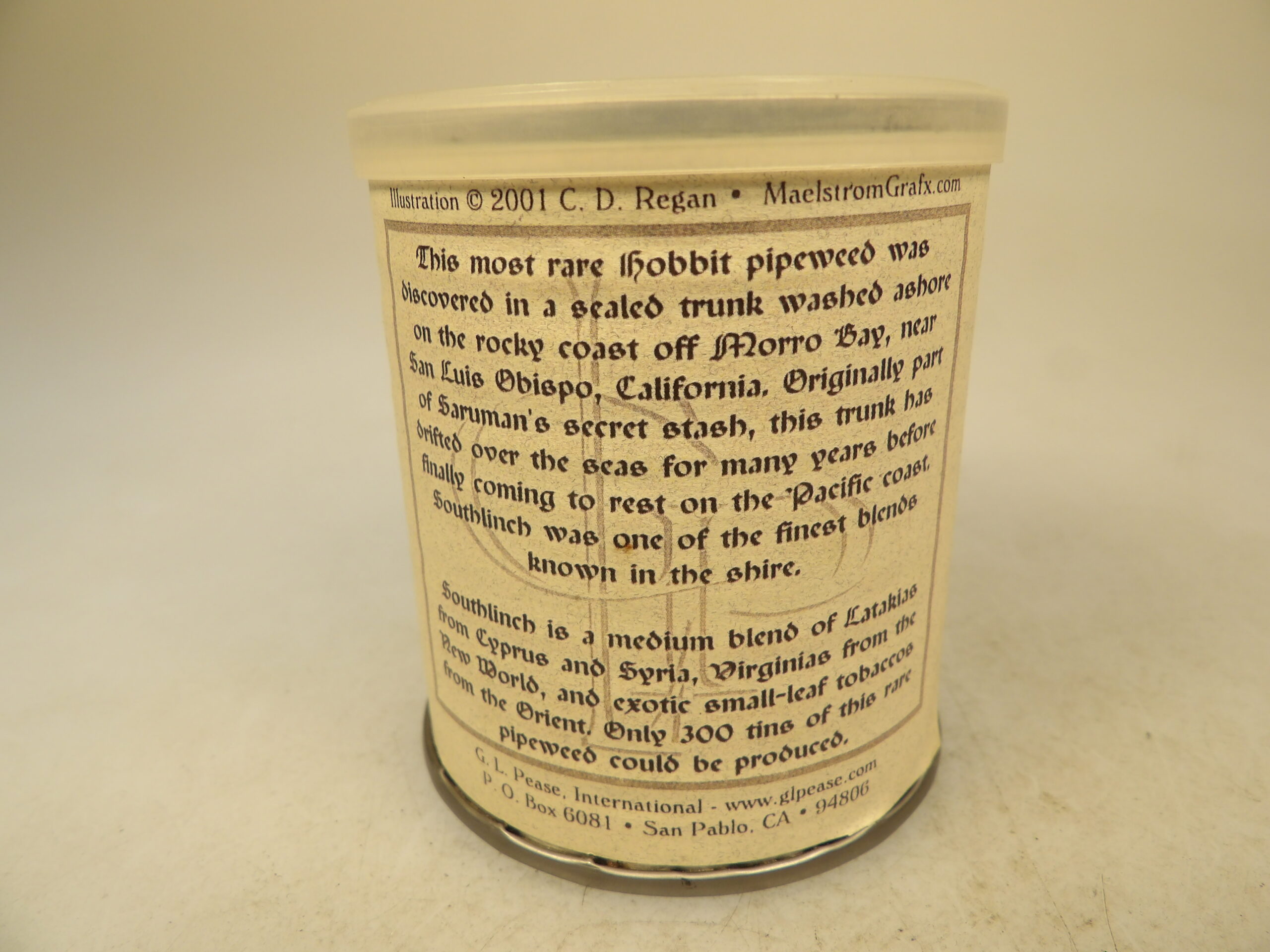 DESCRIPTION: Here is an auction for sale. It is a Vintage Collectible 24 Years Old G.L. Pease NASPC Southlinch 2 oz’s Sealed Pipe Tobacco Tin Annual Show. Southlinch is a medium blend of Latakia from Cyprus and Syria, Virginia from the New World, and exotic small-leaf tobaccos from the Orient. Only 300 tins of this rare pipe weed could be produced. A G. L. Pease Southlinch review on Tobacco Reviews describes the G.L. Pease NASPC Southlinch blend (a 2002 limited edition) as a flavorful, complex English-style tobacco with buttery, cedar notes, cigar-like starts, chocolate undertones, and a good marriage of Virginia and Latakia, best enjoyed slowly to manage heat, offering a creamy, full, and satisfying experience with high spousal approval for room note. Reviewers note it's a step above typical V/O/L blends, burning clean and cool if puffed gently, requiring a dedicated pipe for full appreciation, and generally highly recommended for those who enjoy round, creamy, non-spicy English mixtures. Good Luck Bidding and Thanks for Stopping by.
