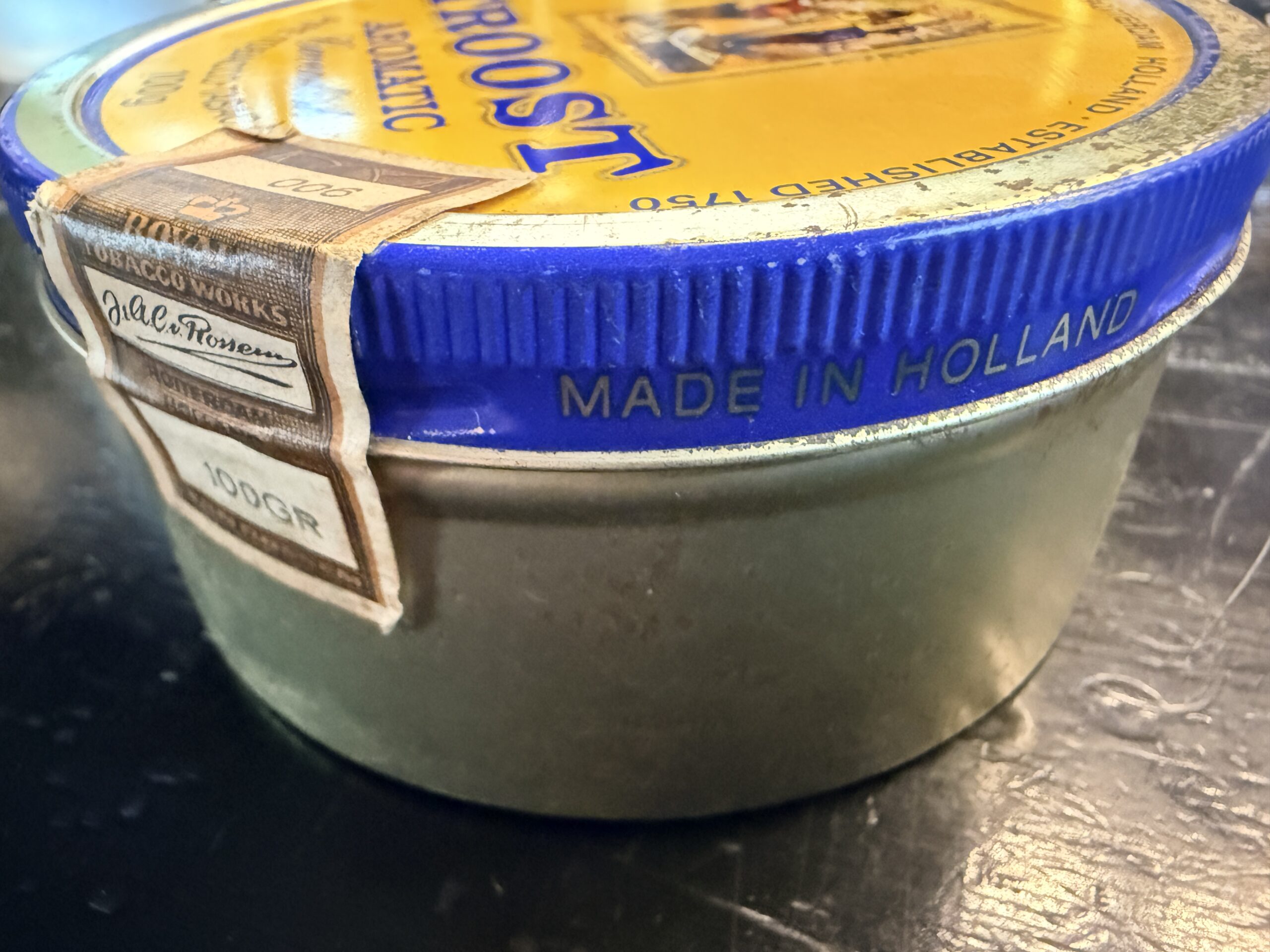 Rare. Full tin. Made in Holland. Tin has shelf wear.