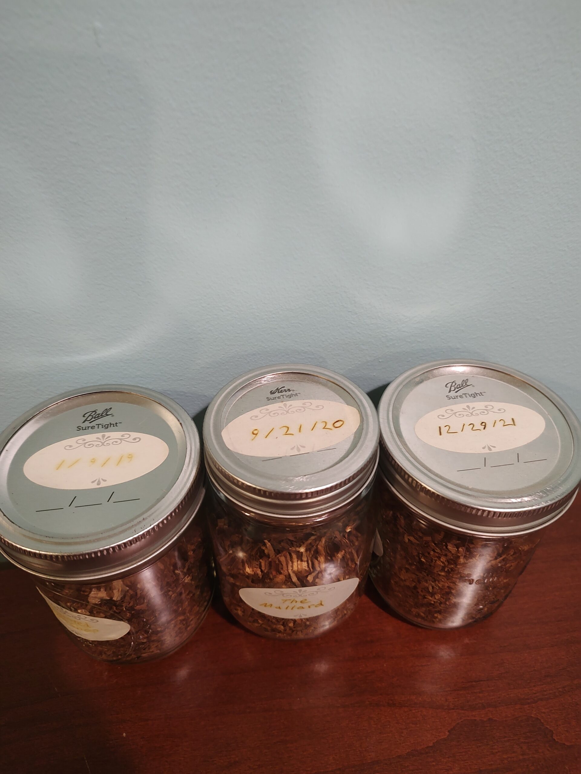 Dust has been left on jars to show they've been pulled directly from my personal cellar, but will be cleaned prior to shipping.