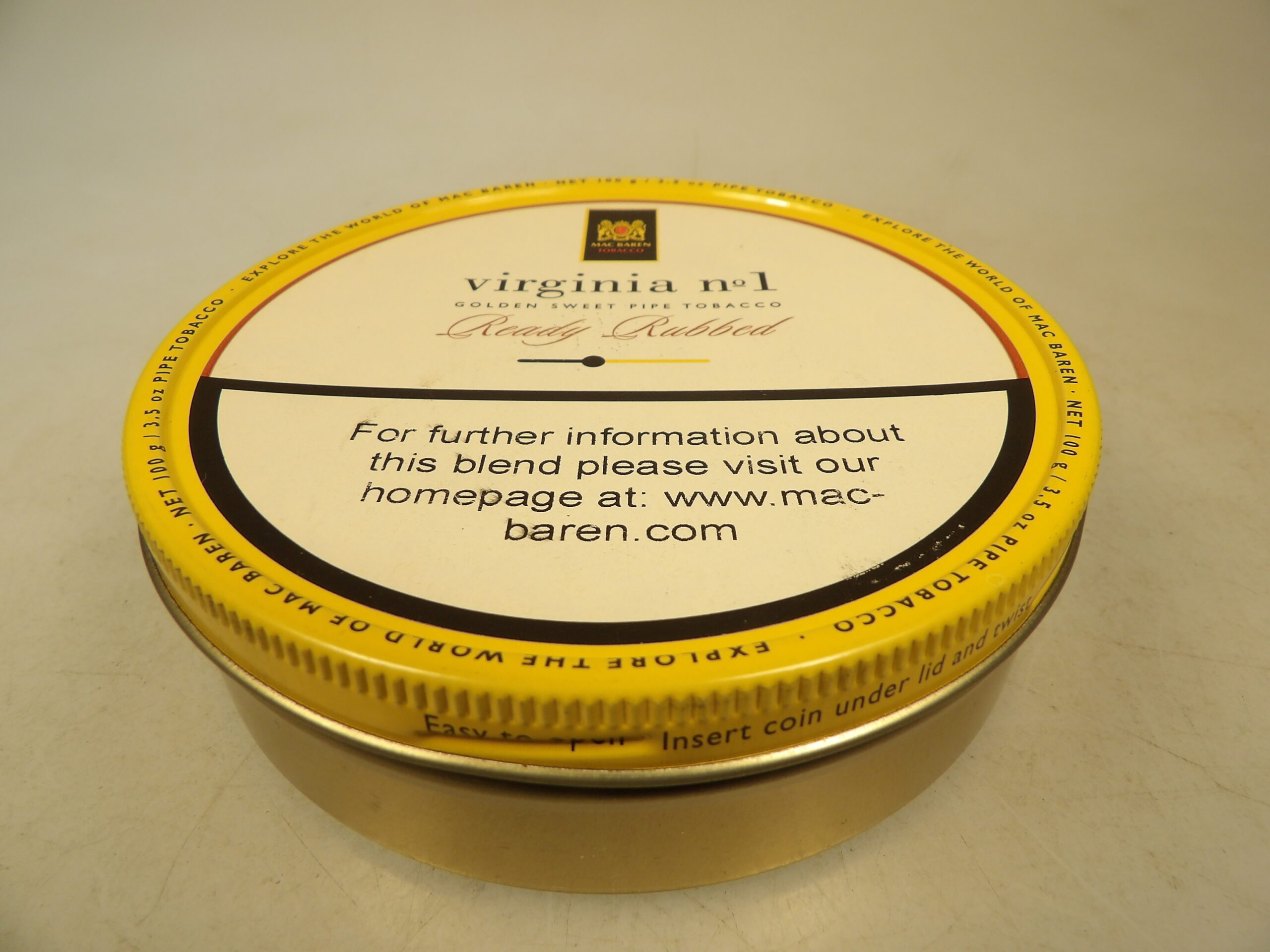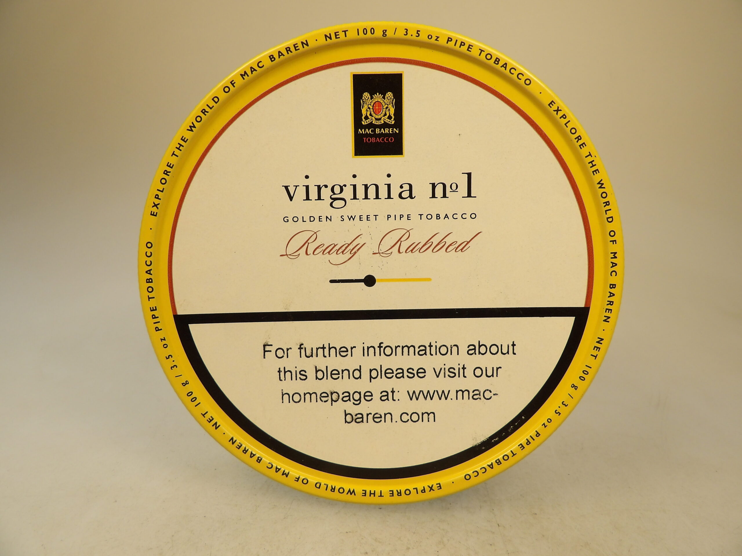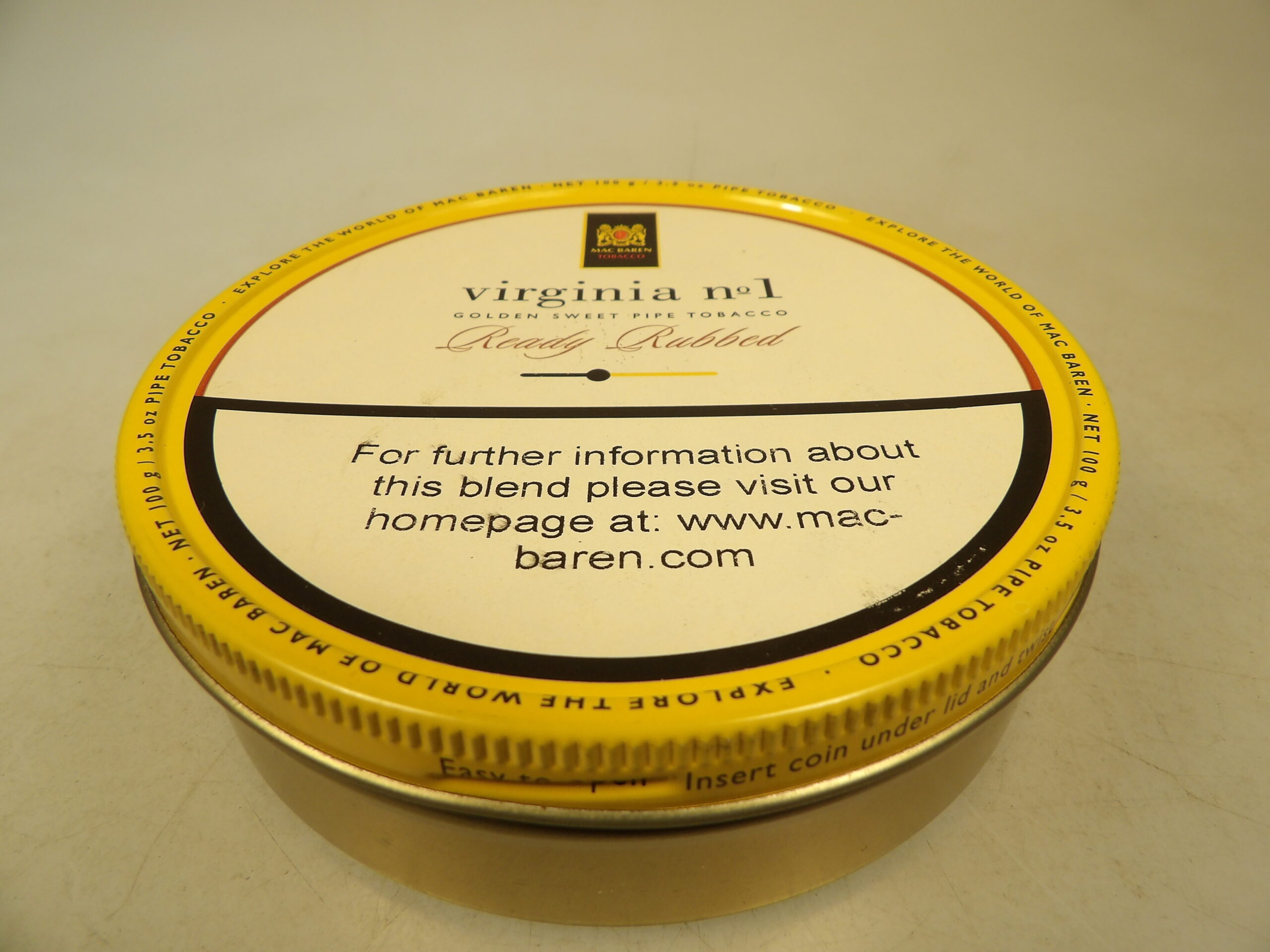 DESCRIPTION: Here is an auction sale. It is a Vintage Collectible Mac Baren Virginia No.1 Smoking Mixture Sealed 3.5 Oz’s Pipe Tobacco Tin. In 1955 Virginia No. 1 was introduced to the world’s pipe smokers, and today Virginia No. 1 is one of the Mac Baren Classics. The natural sweetness from the carefully selected Virginia tobaccos, are to be enjoyed every time you light up this magnificent blend. In addition to a slow, cool smoke this ready rubbed blend gives you the slightly sweet smoke. Try the Virginia No. 1 and find out for yourself why Virginia No. 1 is reckoned as a Mac Baren Classic Blend.