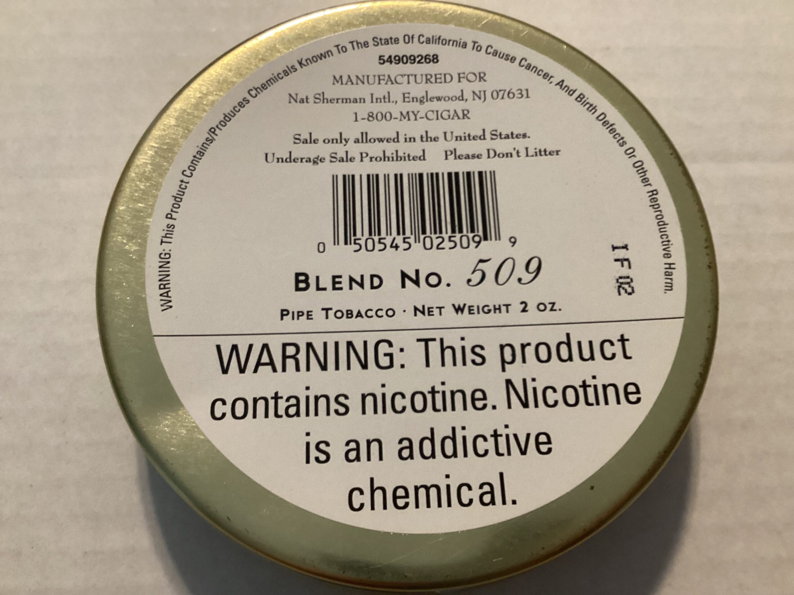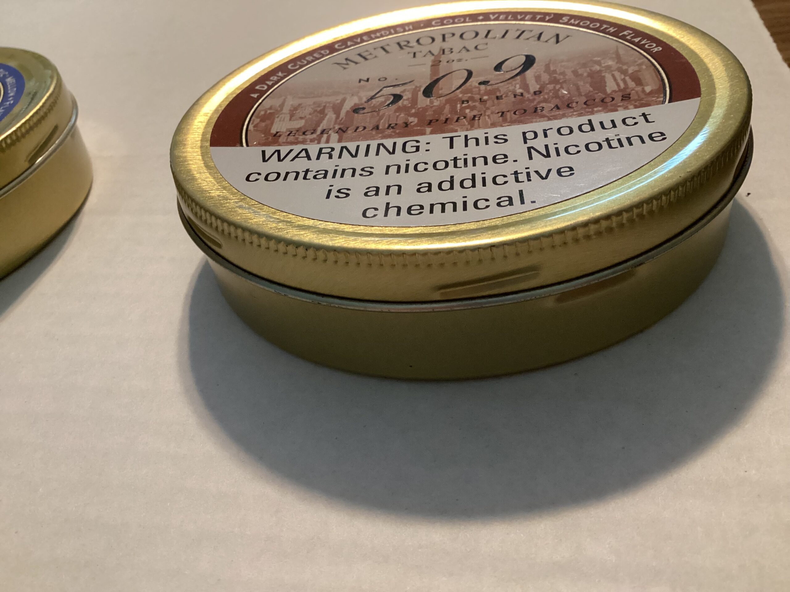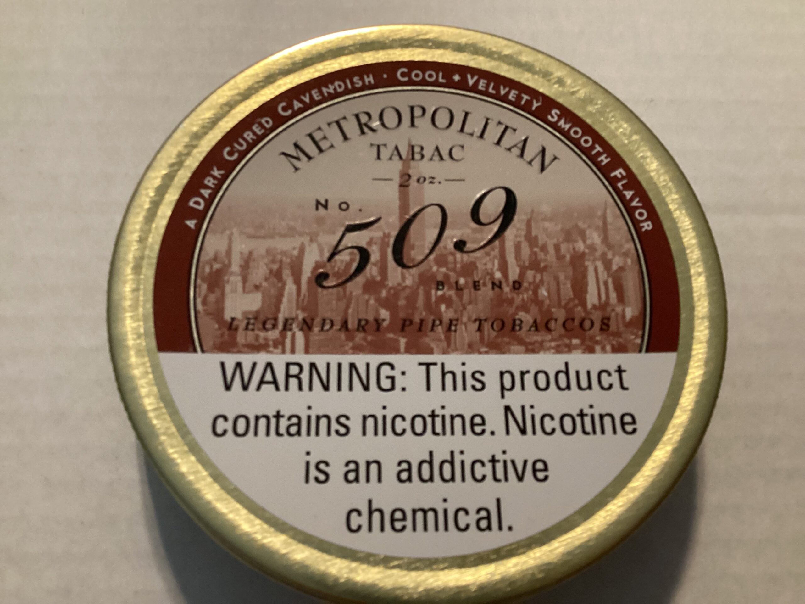 Rare Metropolitan TABAC No. 509 pipe tobacco. Manufactured for Nat Sherman, out of production. No. 509 is made up of dark cured cavendish. Cool, mild smoke with velvety smooth flavor. 2oz. tin.