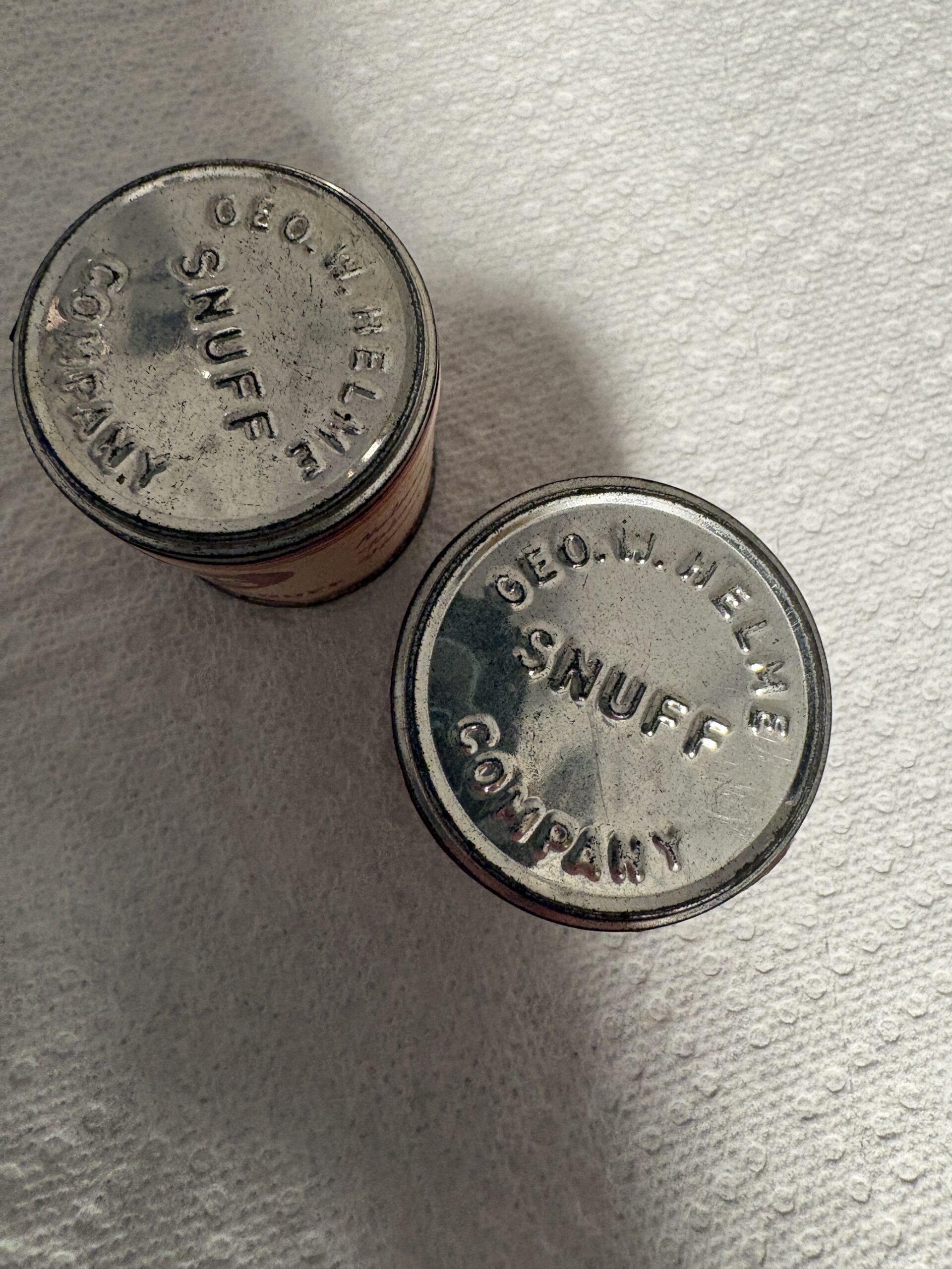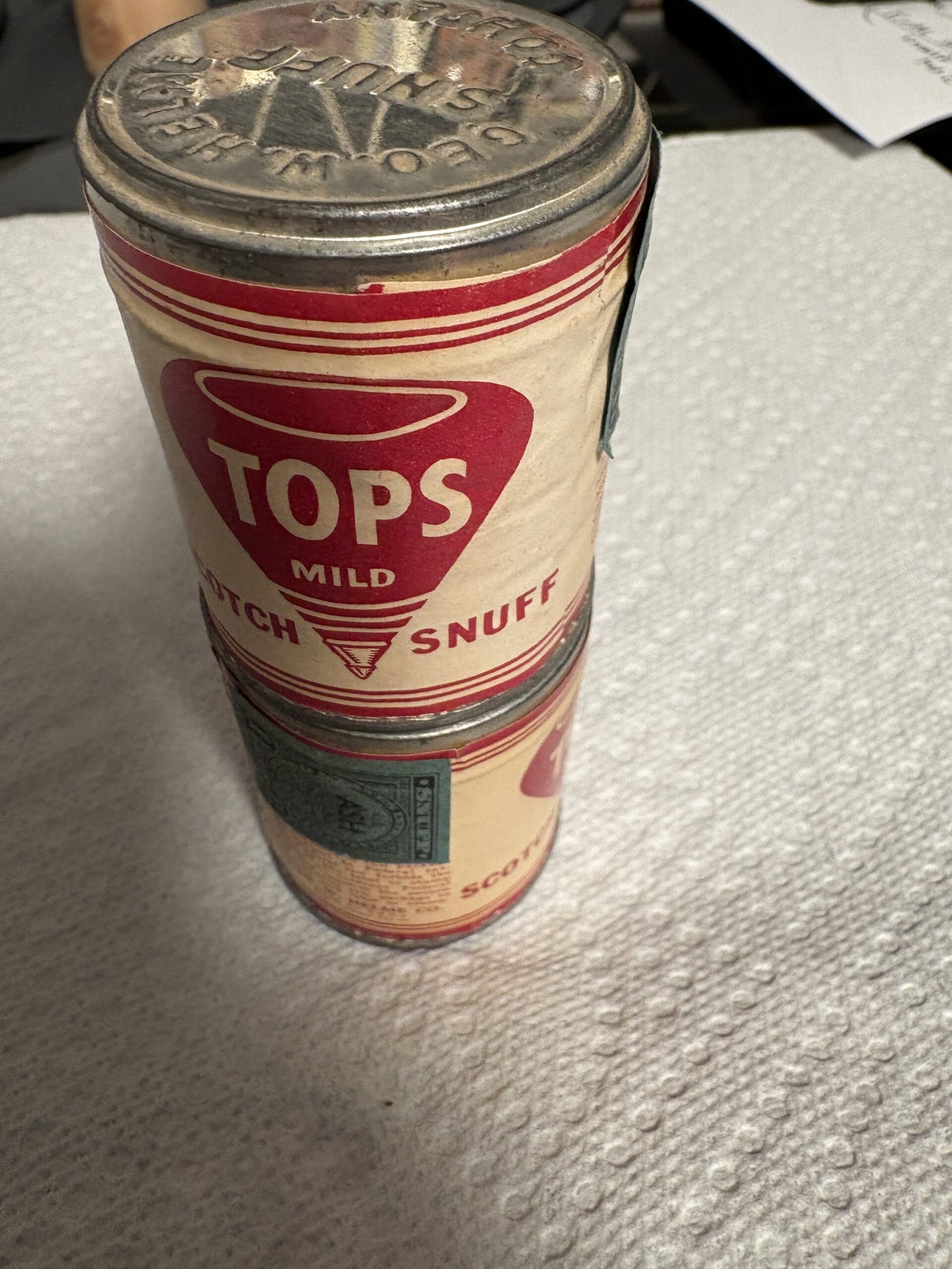 2 cans. Sealed. 1.25 ounces a piece. Tops mild scotch snuff (from my research it’s from the 1940’s.)