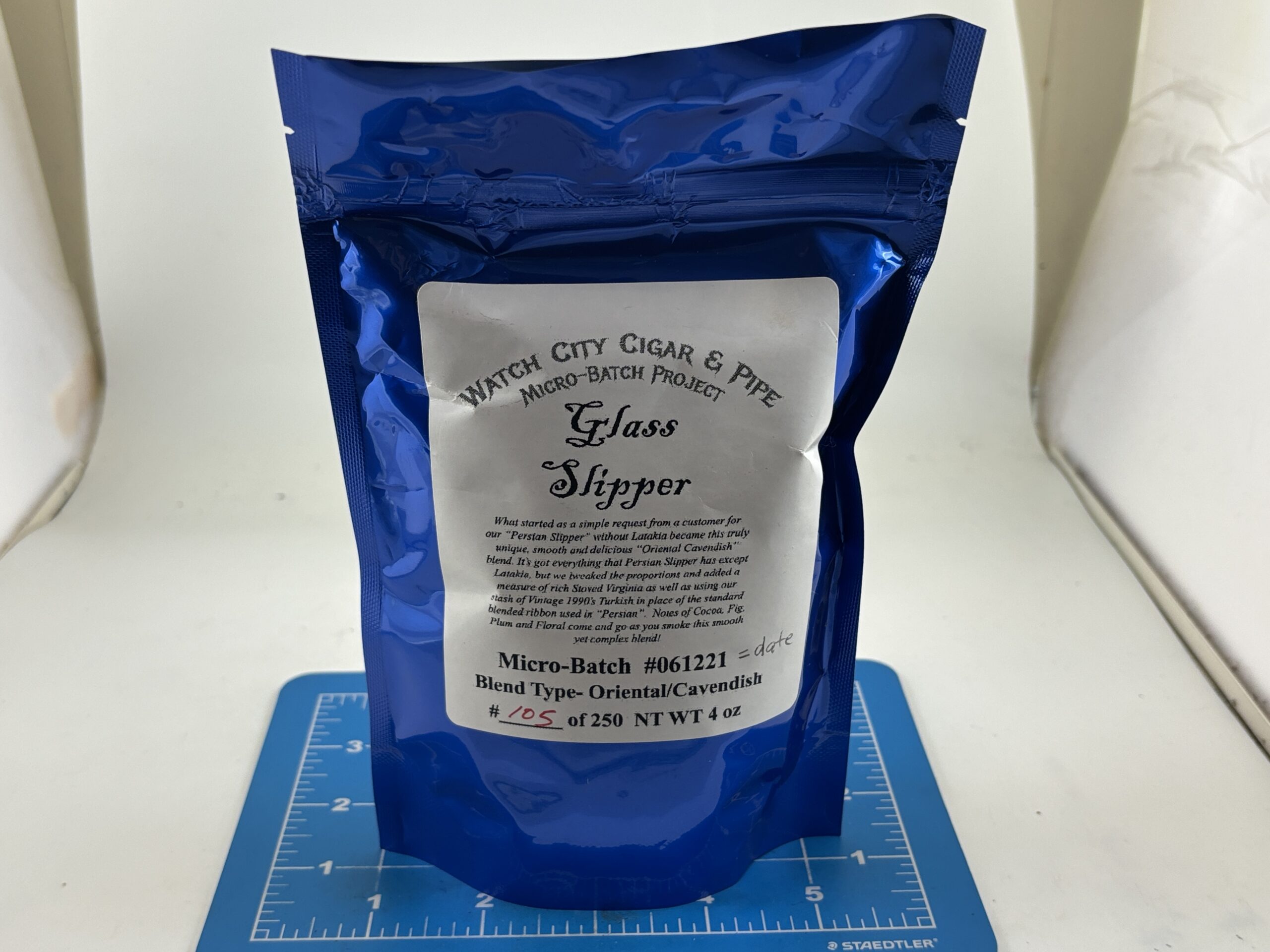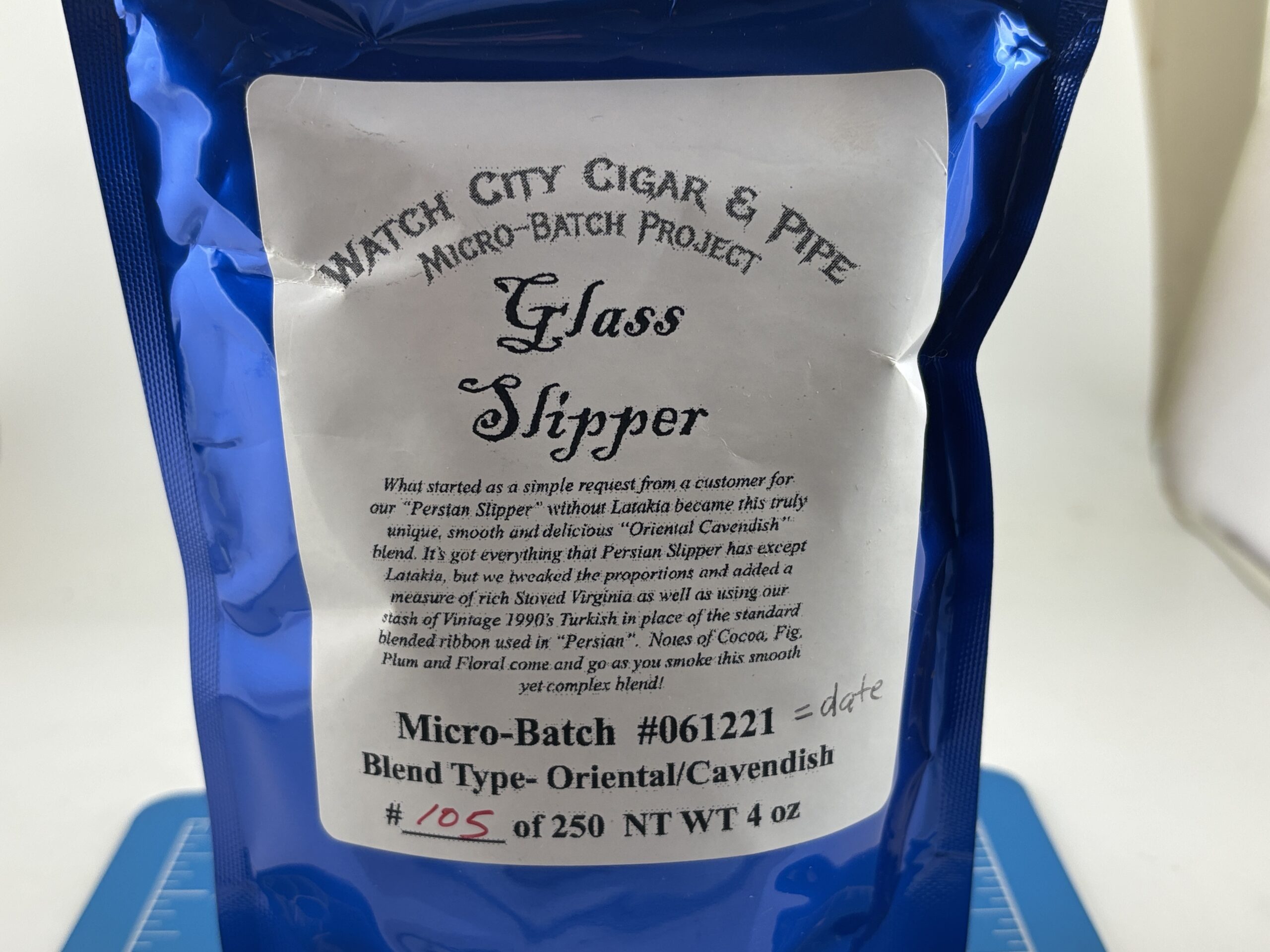 Sealed 4oz. Pack of Glass Slipper Micro-Batch 105 of 250 from Watch City Cigars.