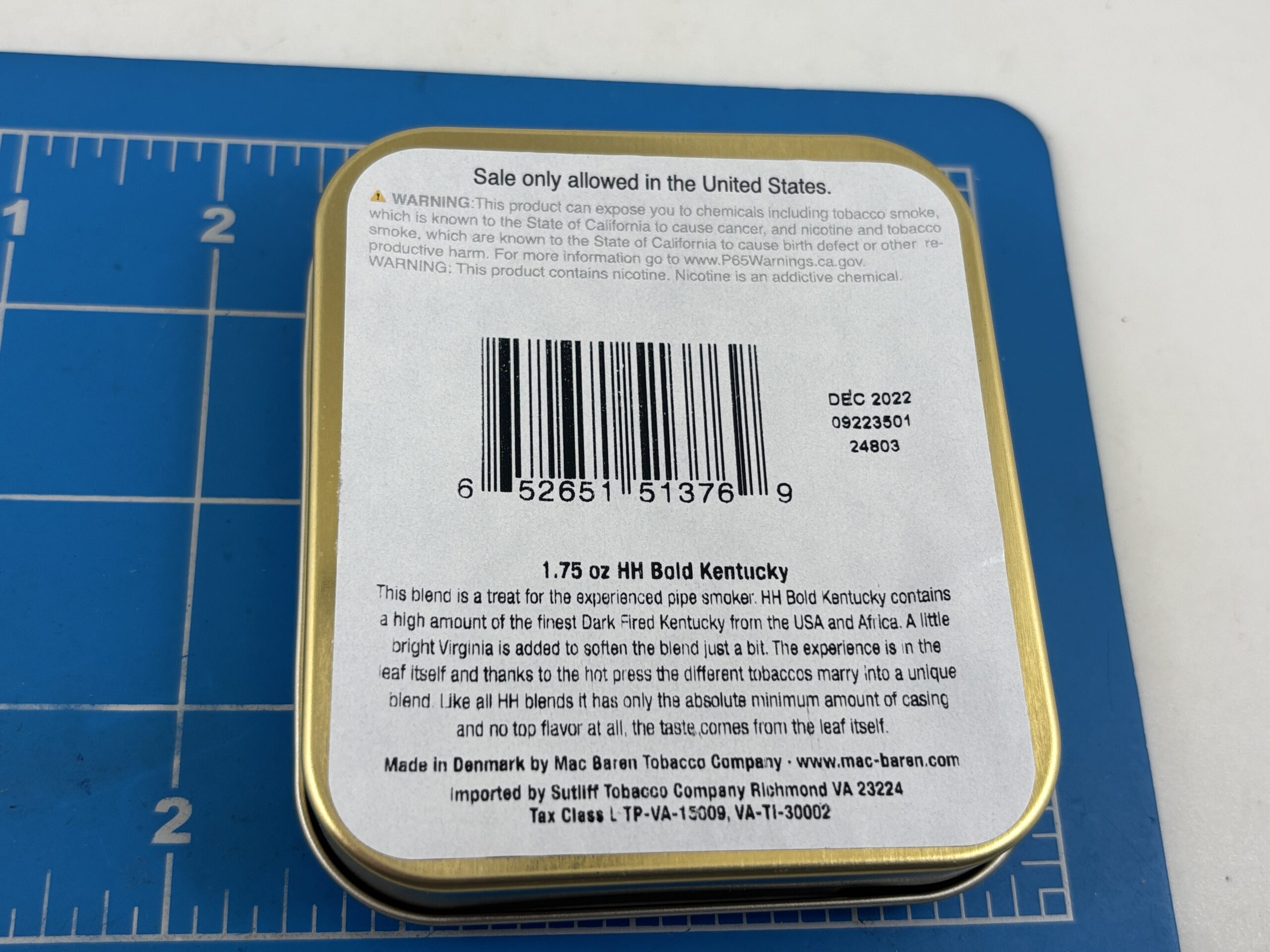Excellent Sealed 2022 Mac Baren HH Bold Kentucky 1.75oz. Tin