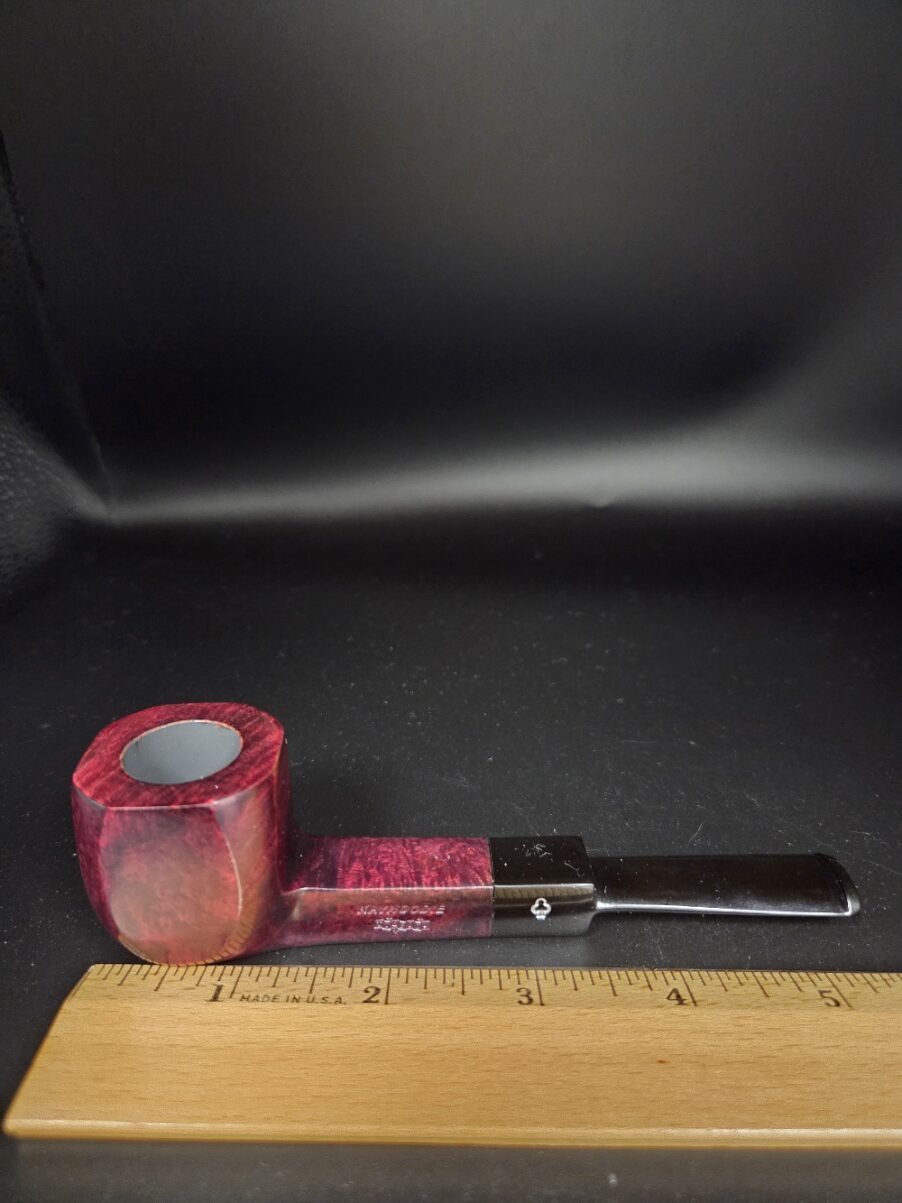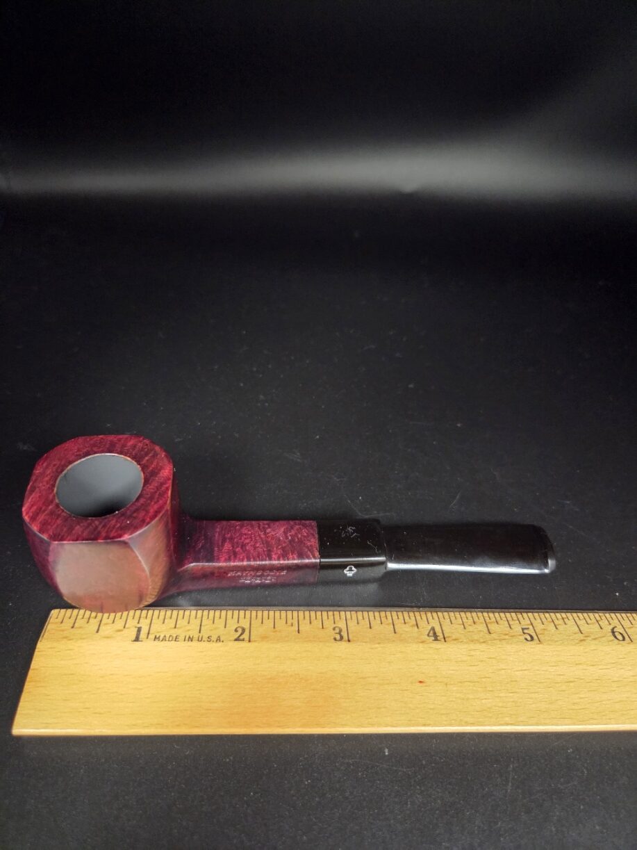 Special, limited edition Kaywoodie x Tinbids octagonal straight billiard pipe with a Bordeaux finish and a saddle stem.