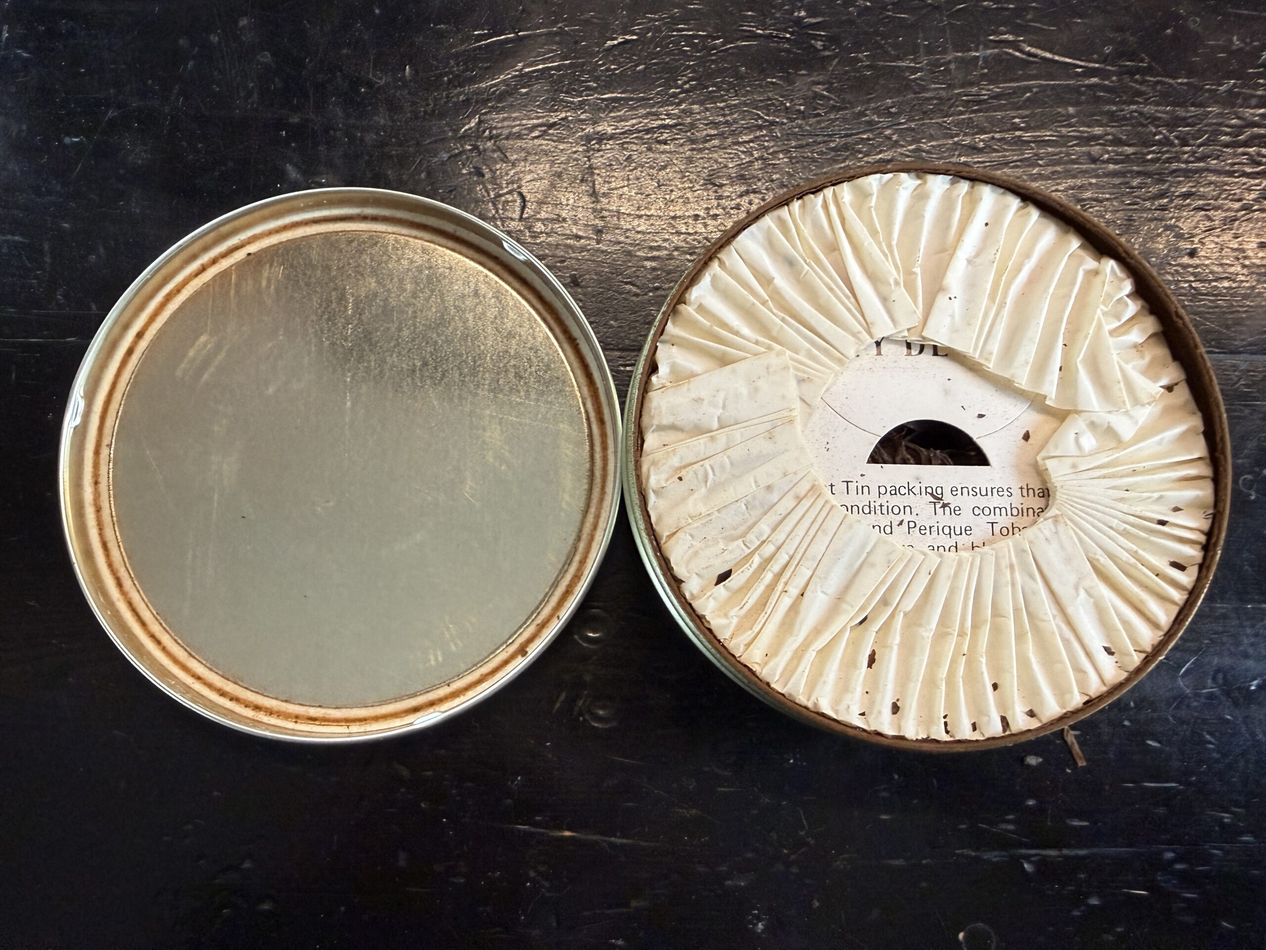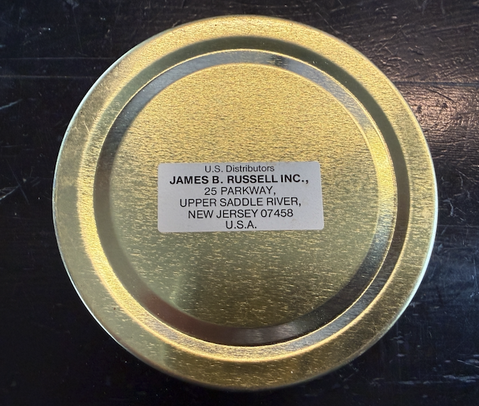 Rare. Full tin. Made in the U.K. Tin has shelf wear. Tin contents are undisturbed, but seal is compromised. Will require rehydration.