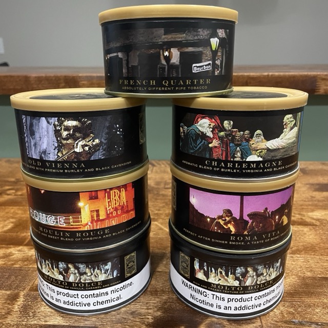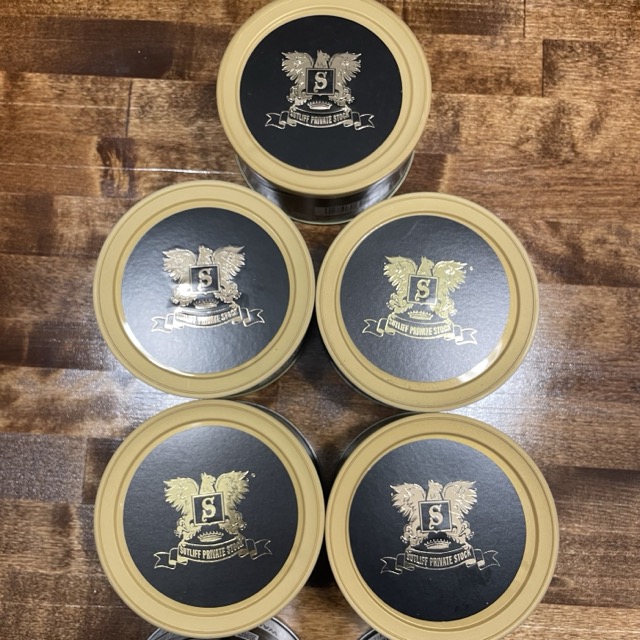 Seven tins of Sutliff private stock aromatic tobacco. All tins have intact seals and show no signs of dehydration. There is slight surface rust on the base of 3 tins . Please see below for specifics regarding blend and year of production.
