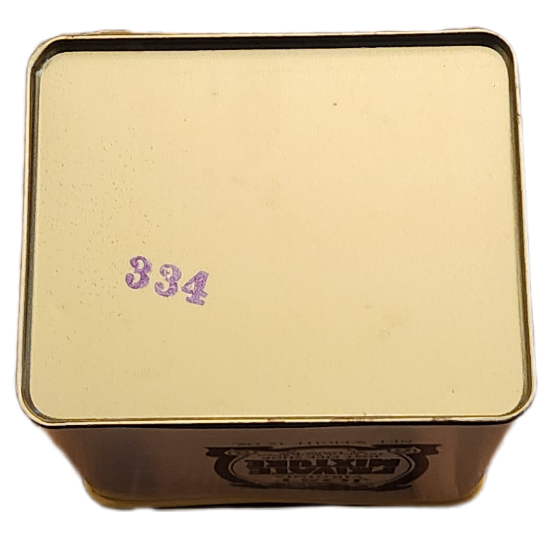 This shop closed in the 80s . The inner bag weighs 14 Oz. and the tape looks original , it will need rehydrated . This is some very well aged VIRGINIA.