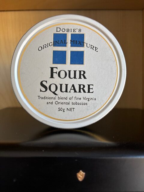 From my tobacco cabinet a 50g unopened tin of Dobie's Four Square Original Mixture (Blue) I purchased in 1999. Luckily, my tobacconist let me know that it was going out of production and to buy what I could. A traditional blend of fine Virginias and Orientals now with the benefit of 25 years of blissful age.