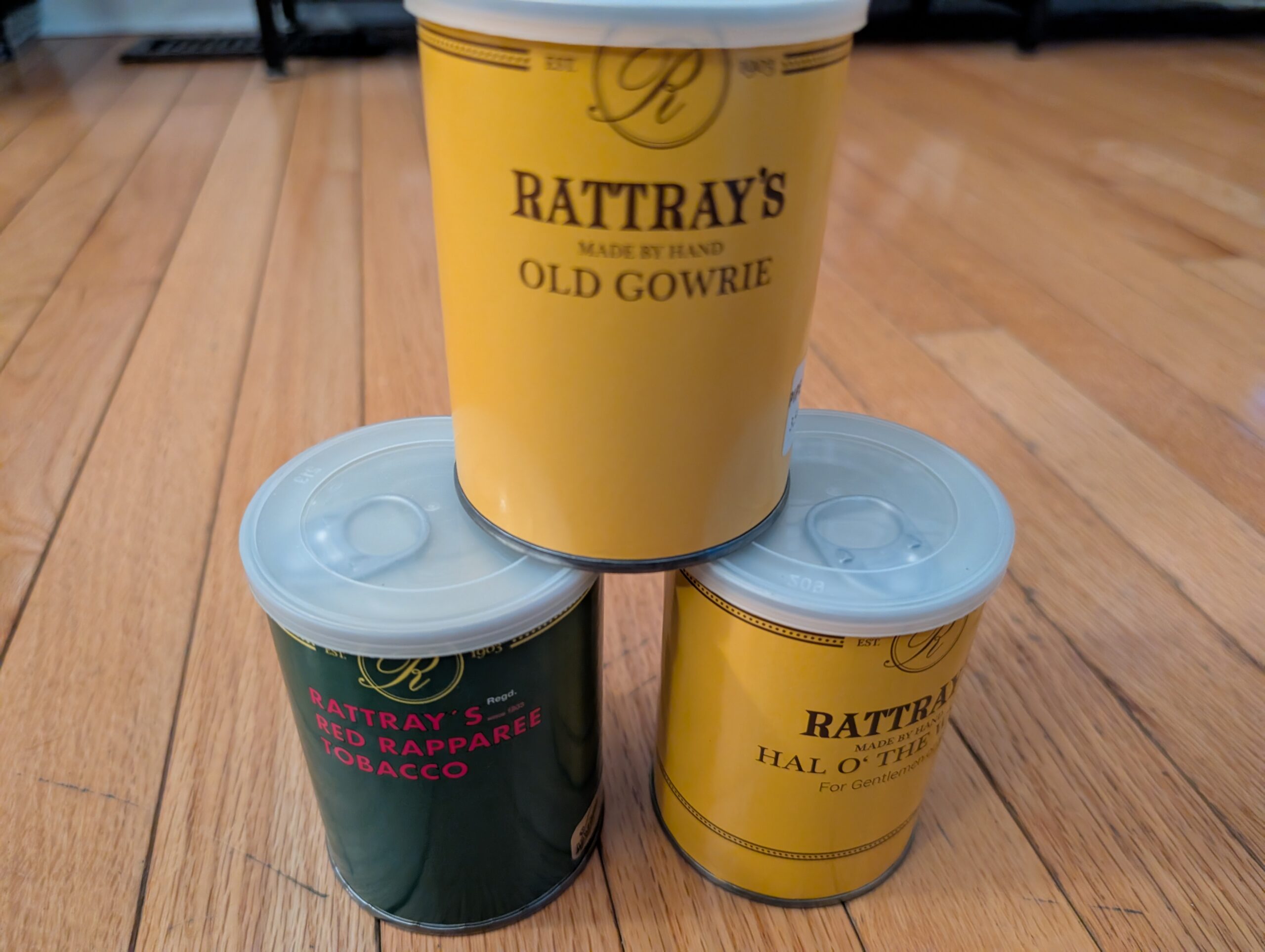 Rattray's 3 tin combo Old Gowrie Hal O' The Wynd Red Rapparee 5 YEARS OLD EACH