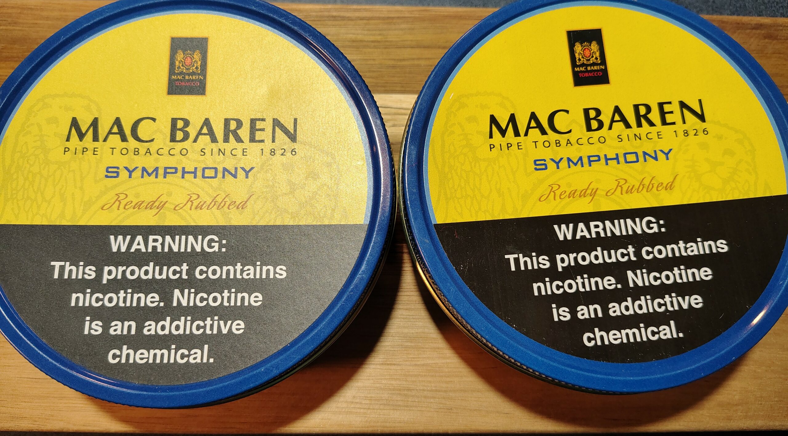 Mac Baren Symphony 3.5oz (2) sealed tins. Dates 6-2018 and 3-2018. Stored in climate controlled cellar.