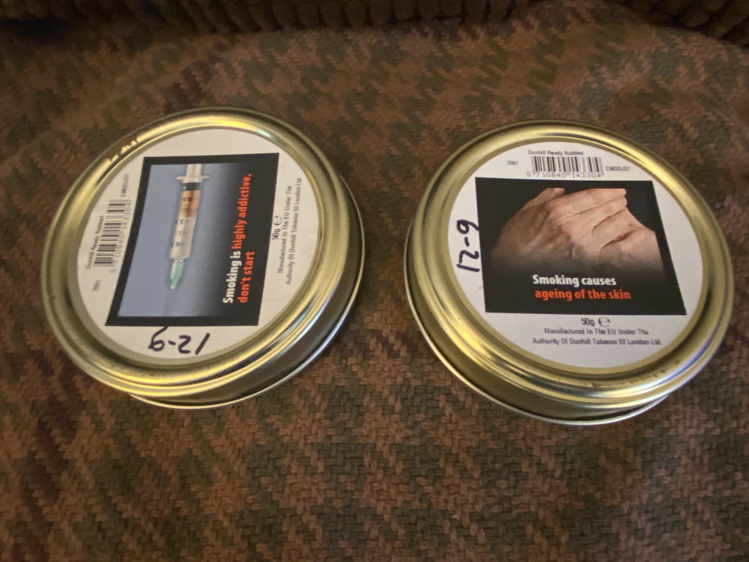 Two 50g tins being offered here. I purchased these in 6/2021 from either Smoking Pipes or Cup-O-Joes here in the U.S. although it has the "hard core" Euro style warning labels. All the same inside. Sealed and stored properly. This was getting hard to find in the U.S. so I stocked up and it seems to not be available stateside.