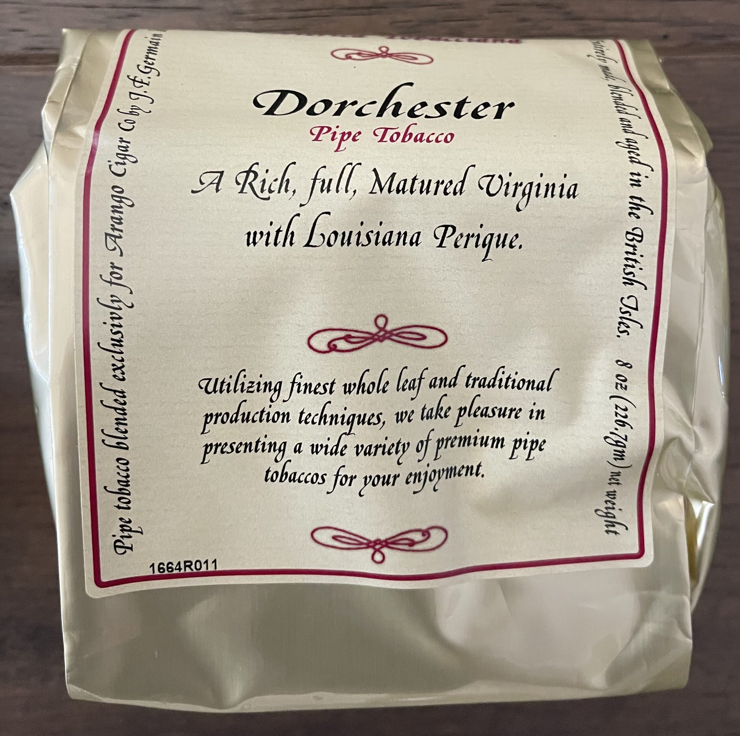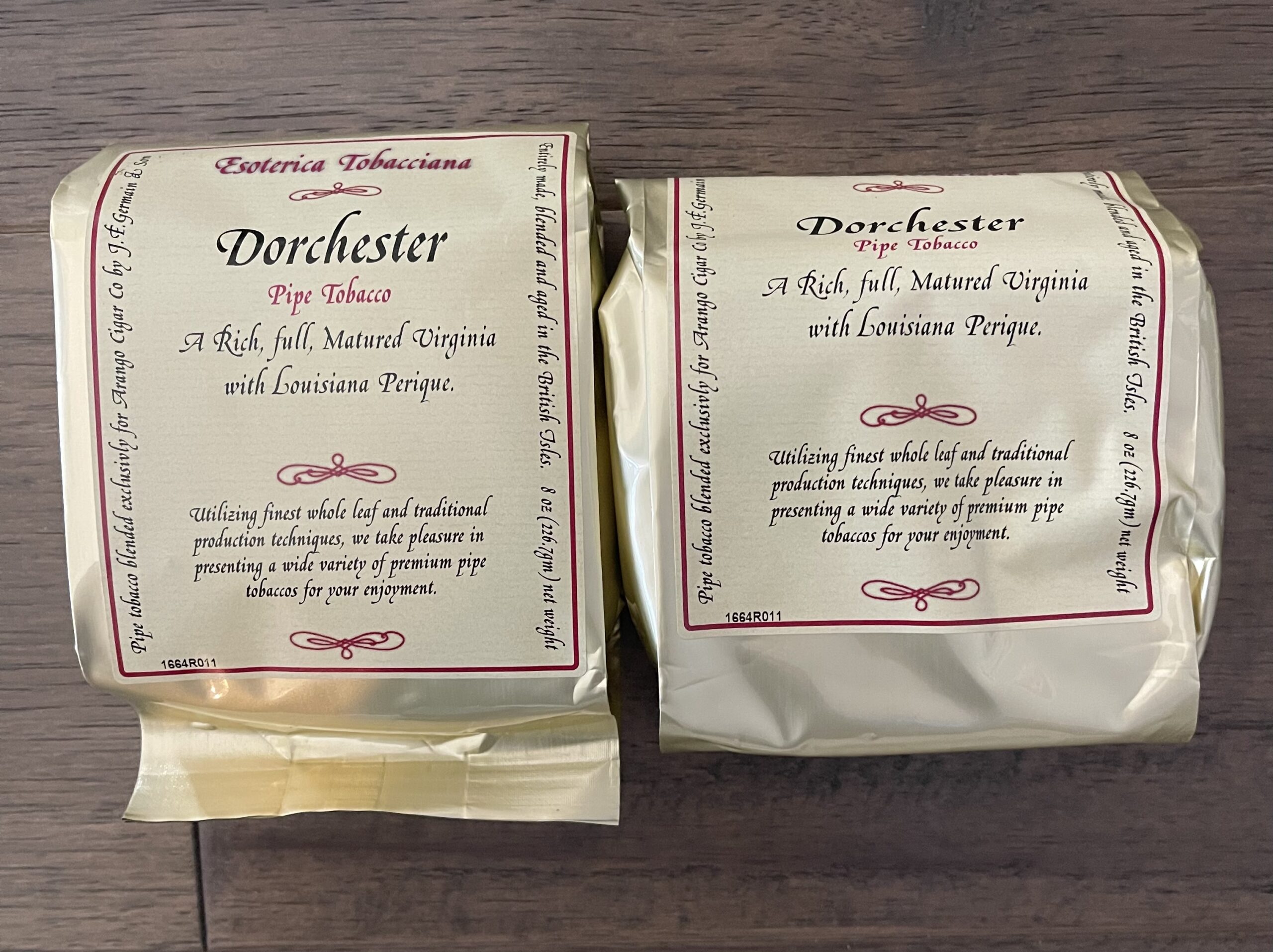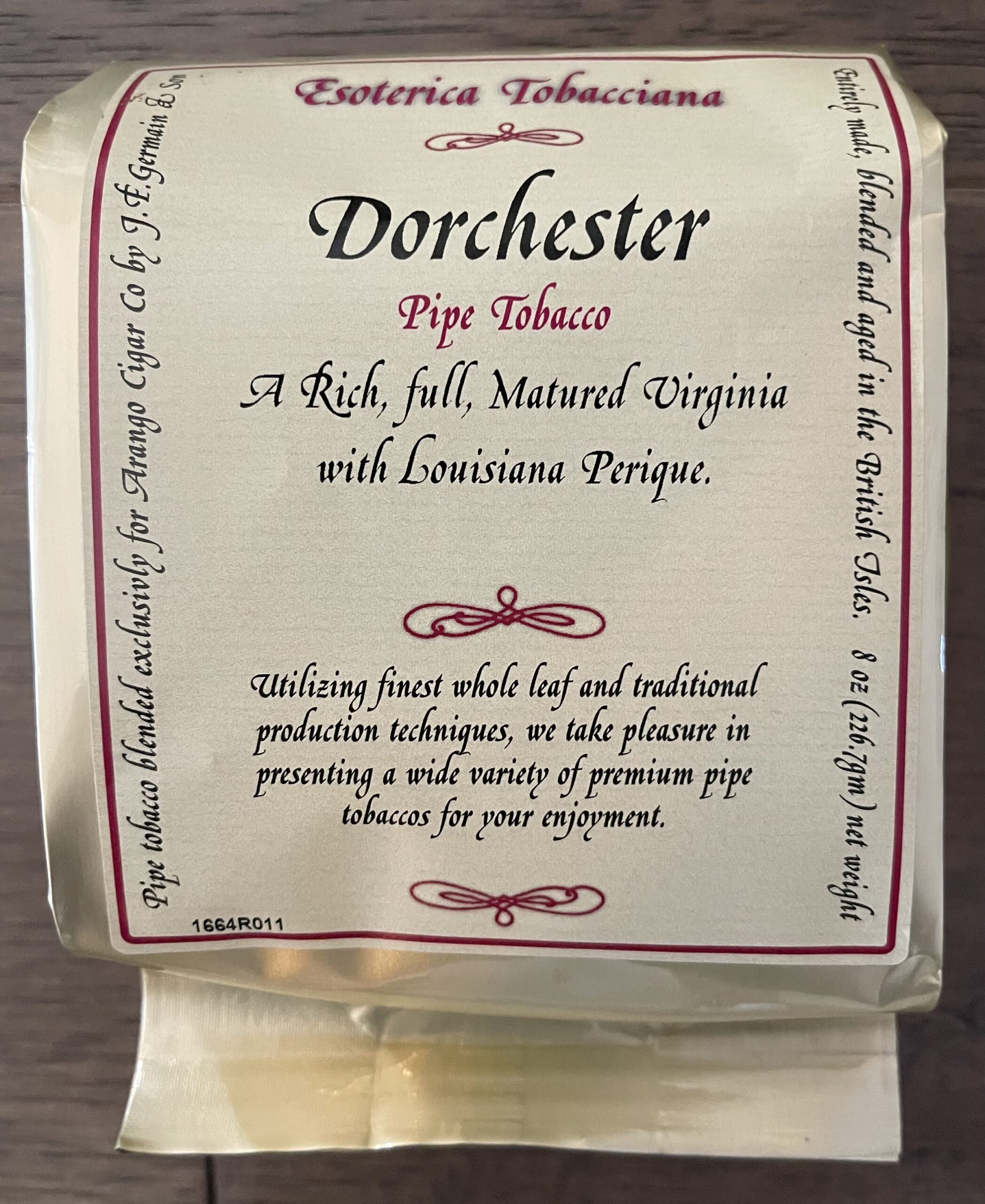 Esoterica Dorchester Pipe Tobacco is a special formulation of six light Virginias plus Golden and dark Virginias with air-cured leaves and a pinch of Louisiana Perique.