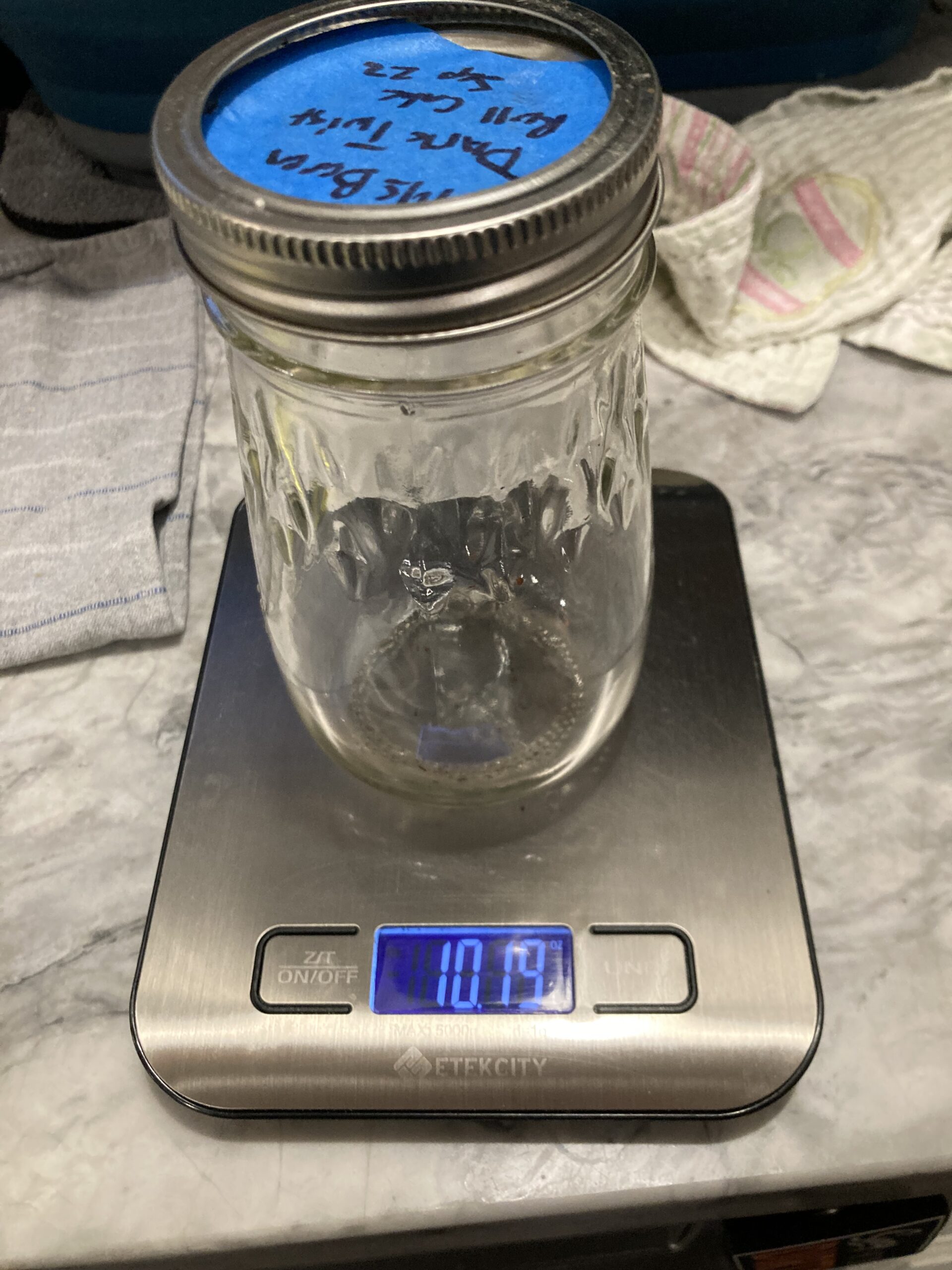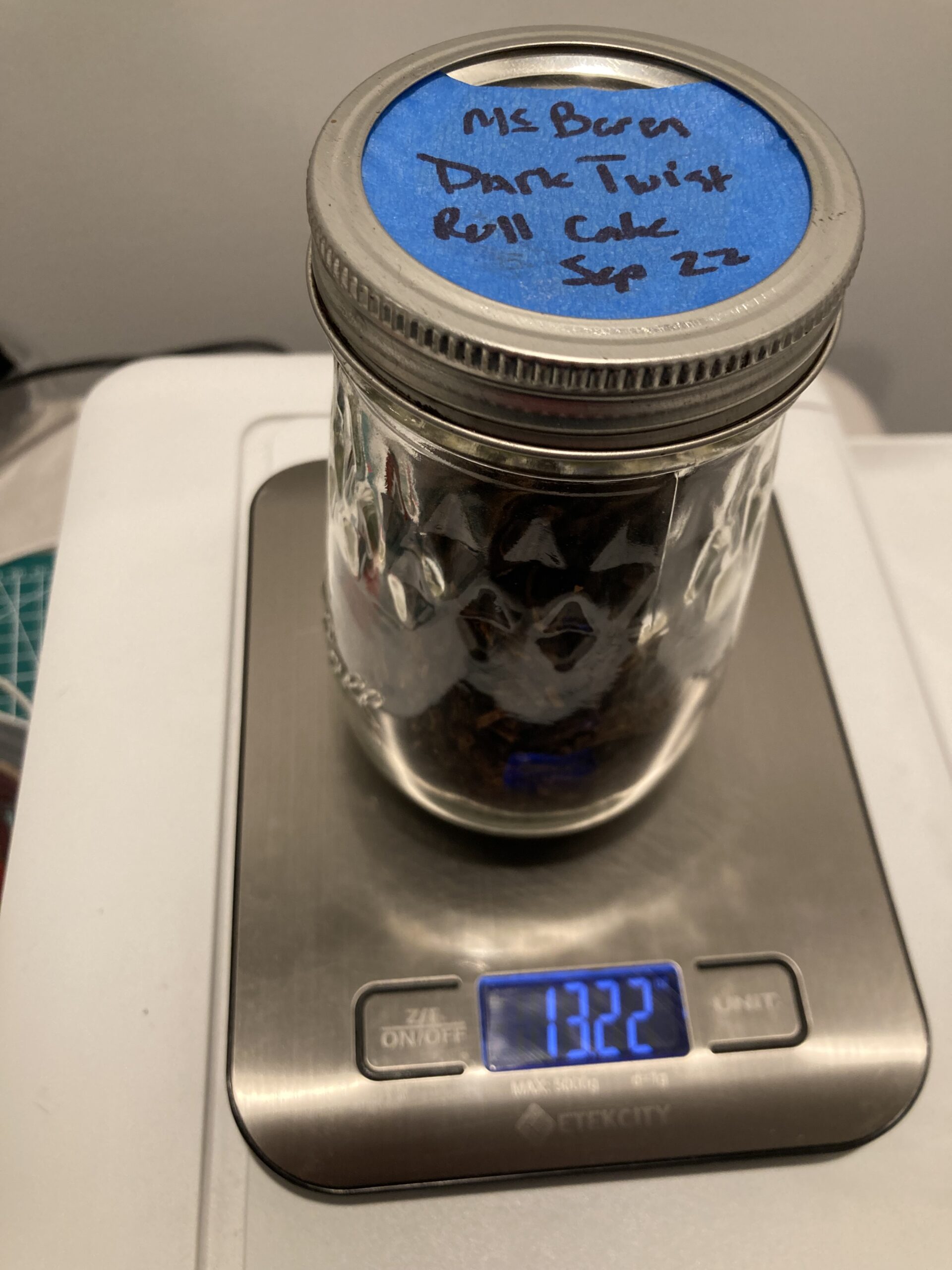 Per title. Weight of full jar is 13.22 ounces (374 grams) on my scale, weight of empty jar is 10.19 ounces (288 grams) making the weight of the tobacco just over 3 ounces or 85 grams. No reserve.