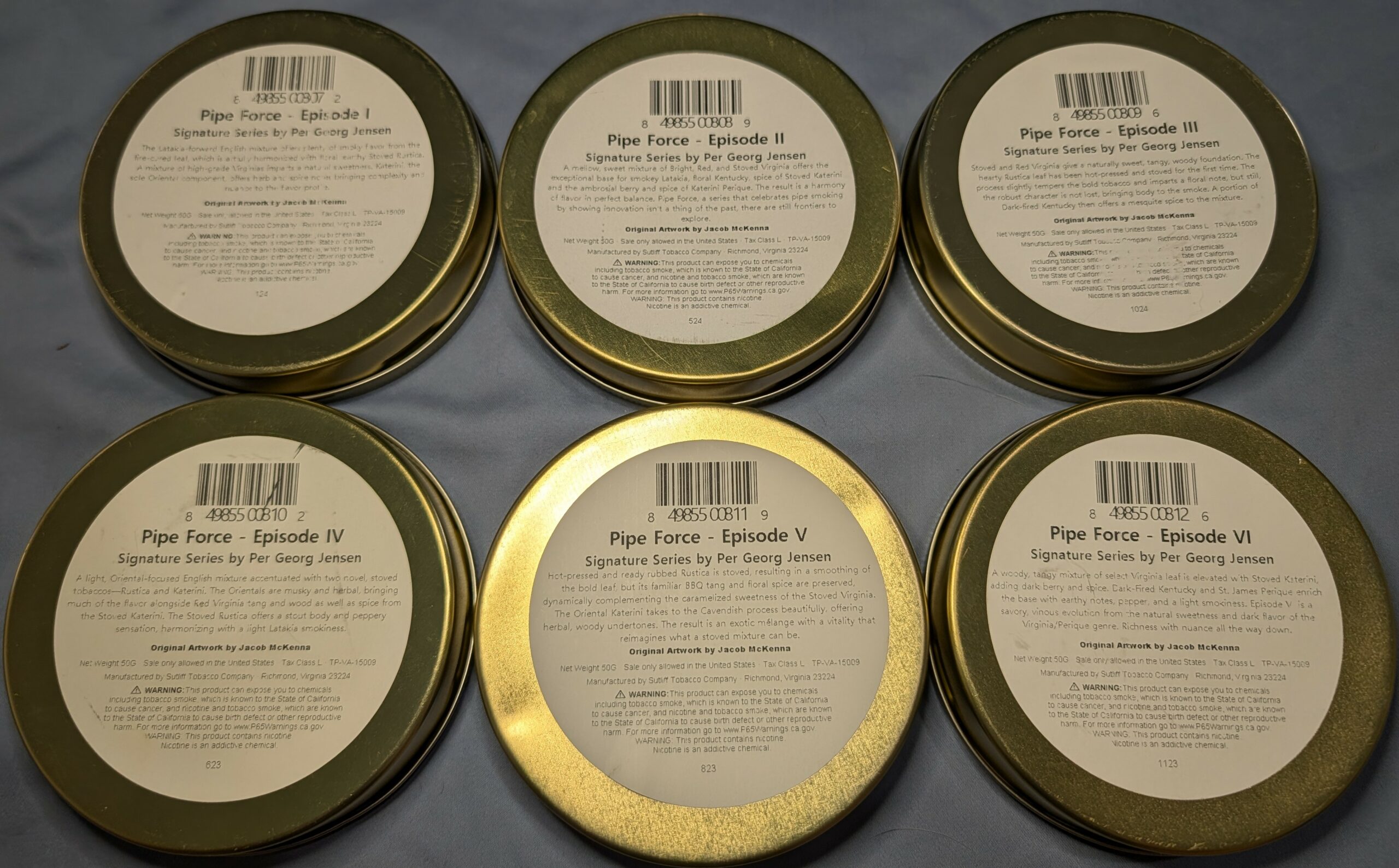 Limited Series edition of tobacco by Sutliff & Per Georg Jensen. This is a full set of all 6 tins