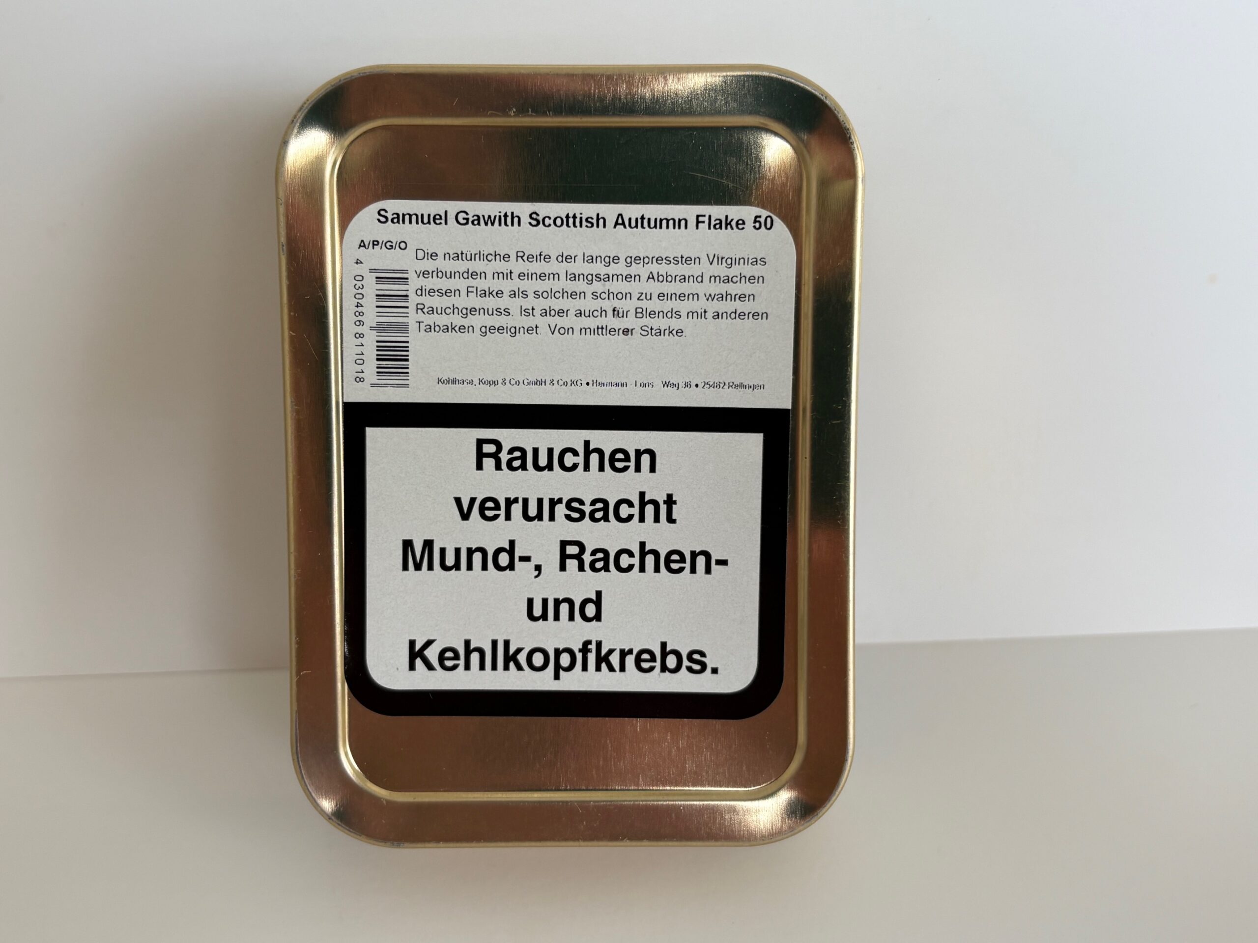Unopened 50g tin of 2015 Samuel Gawith Scottish Autumn Flake.