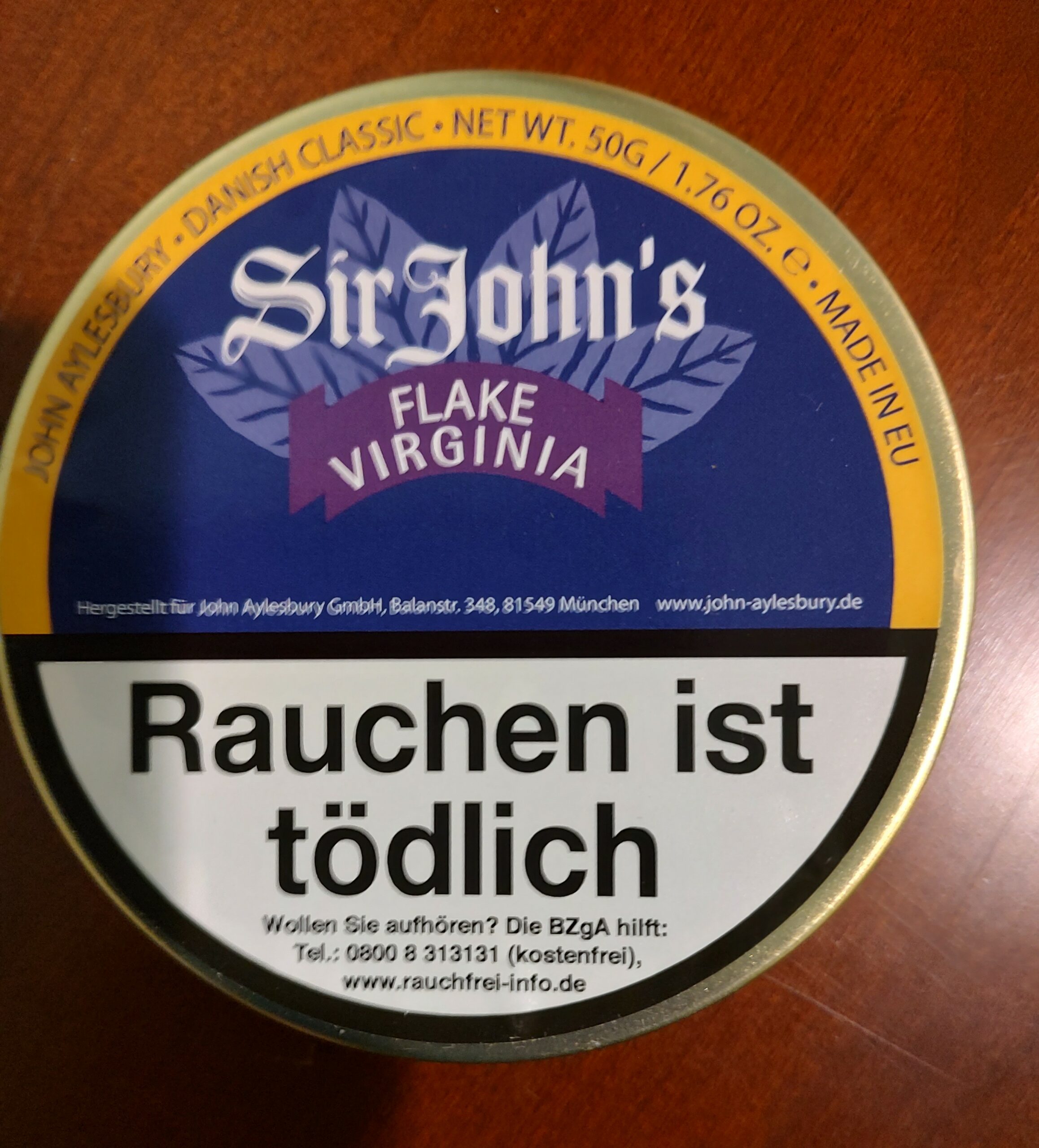 This auction is for one 1.76 oz. tin of Sir John's Flake Virginia.