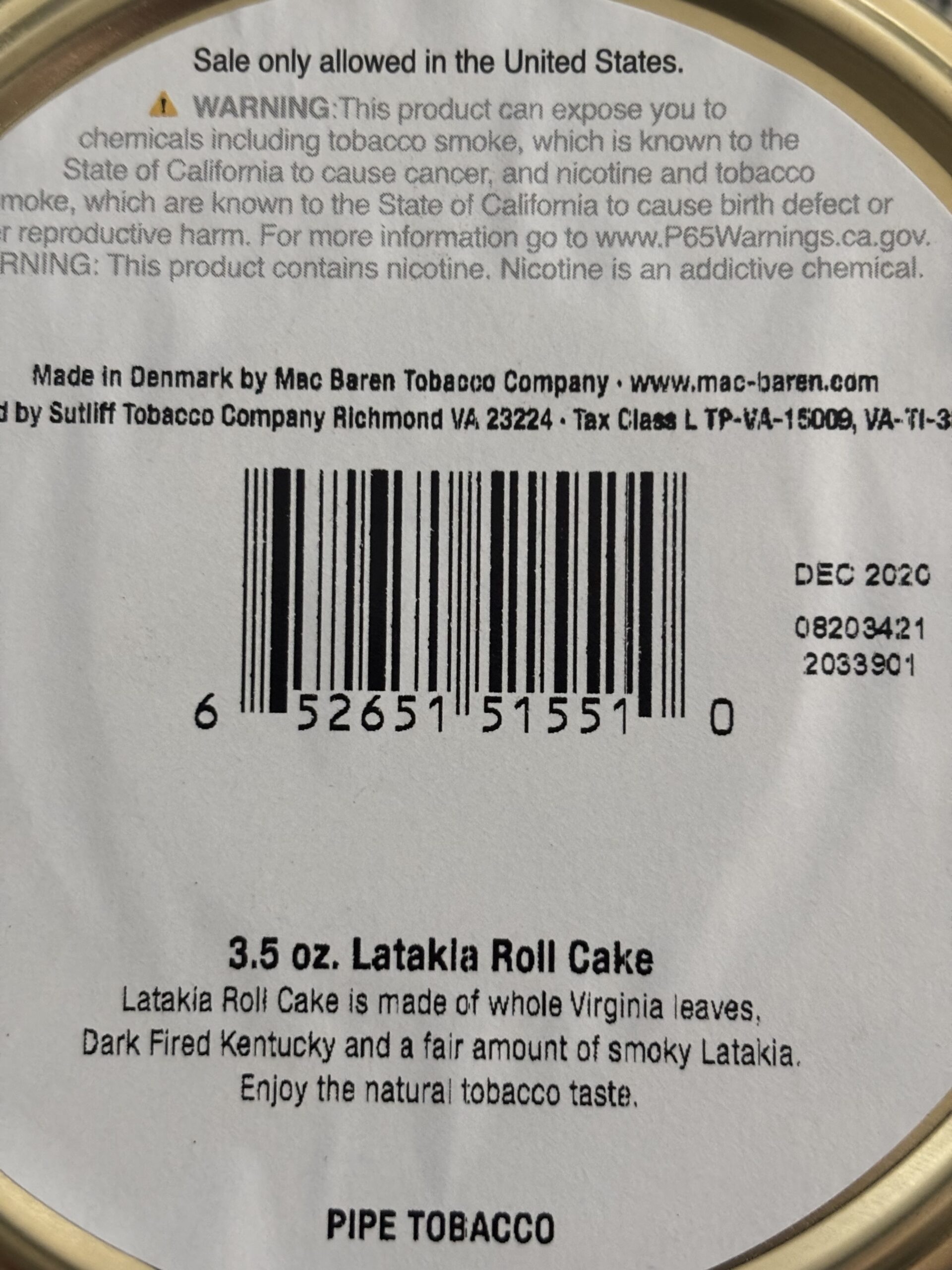 Mac Baren Latakia Rolls Limited Edition 3.5 oz 2020