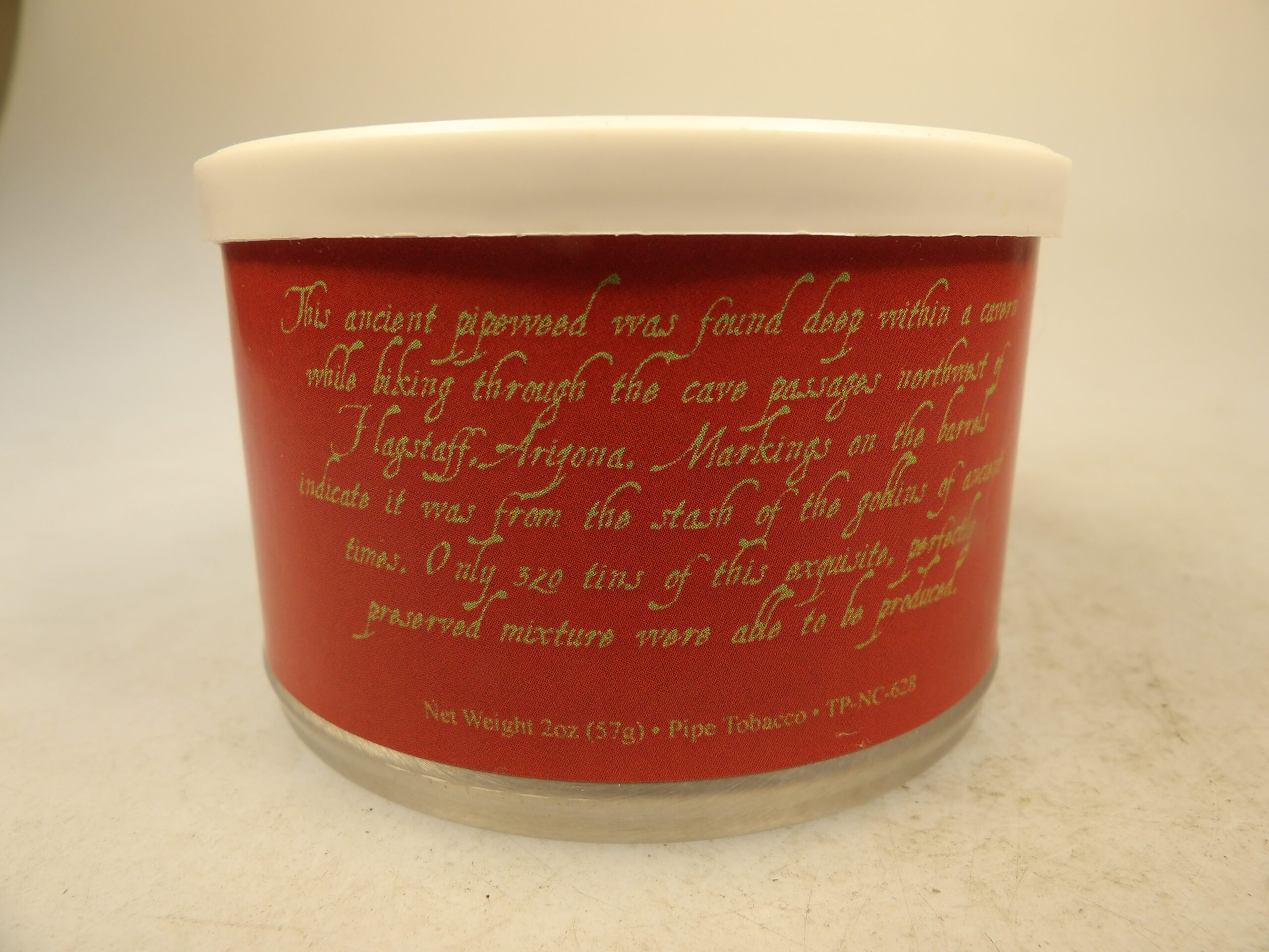 DESCRIPTION: Here is an auction for sale. It is a Vintage Collectible 11 Years Old G.L. Pease NASPC Goblin’s Weed Red 2 oz’s Sealed Pipe Tobacco Tin Annual 2014 Show. This tin is sealed and has never been opened. The tin is a limited blend tin produced for this year only during the NASPC annual show. From the tin: This ancient pipe weed was found deep within a crevasse while biking through cave passages northwest of Flagstaff, Arizona. Markings on the barrels indicate it was from the stash of goblins of ancient times. Only 320 tins of this exquisite, perfectly preserved mixture were able to be produced. Notes: 160 each were made of the Goblin's Weed, one Red and the other Brown. The Tobacco contained within is an English Blend using Latakia, Oriental/Turkish, Virginia Mix. Good Luck Bidding and Thanks for Stopping by.