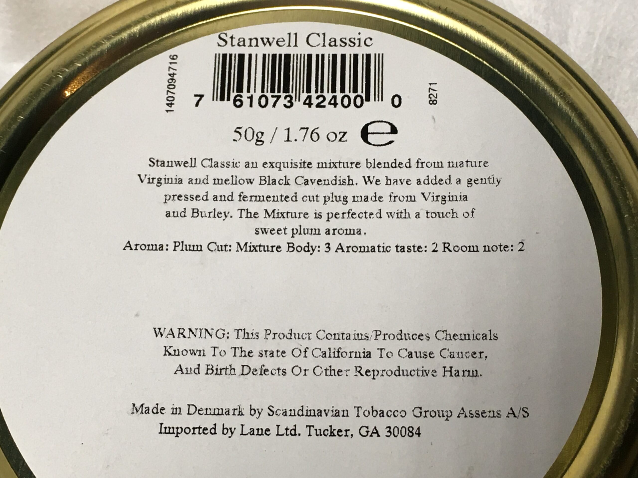 Aged STANWELL CLASSIC (Virginia w/ Cavendish) Pipe Tobacco (50 g 1.76 oz) Sealed Tin.
