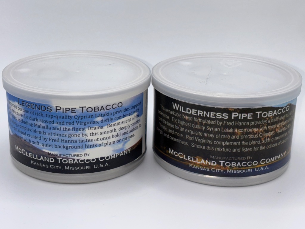 Two unopened 50g tins of McClelland's Legends and Wilderness (one each) from my private collection. These blends were formulated by Fred Hanna.