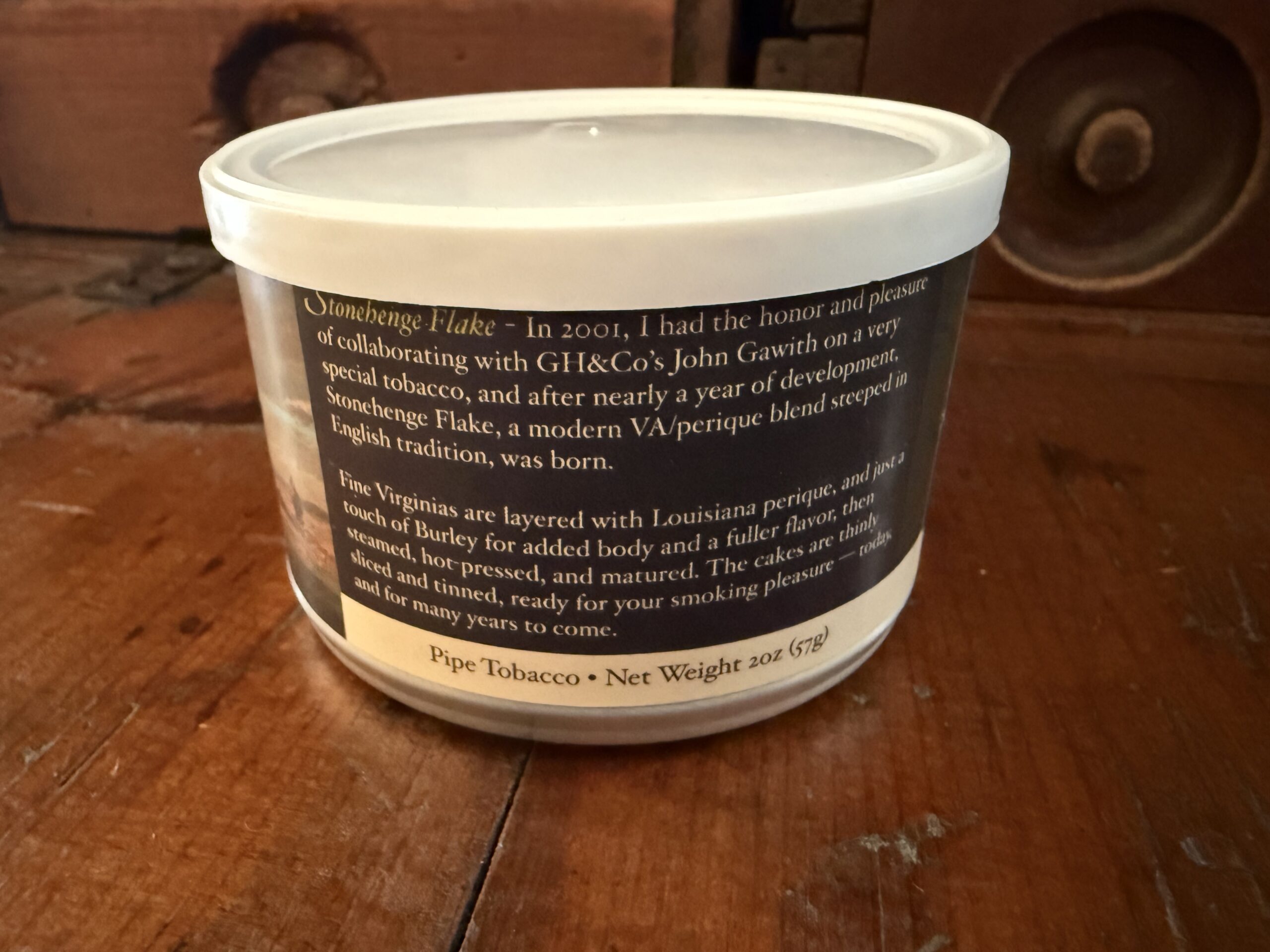 2 oz. sealed tin of G.L. Pease Stonehenge from 2017. Stored in climate controlled cabinet. Tin is bulging but seal is in tact.