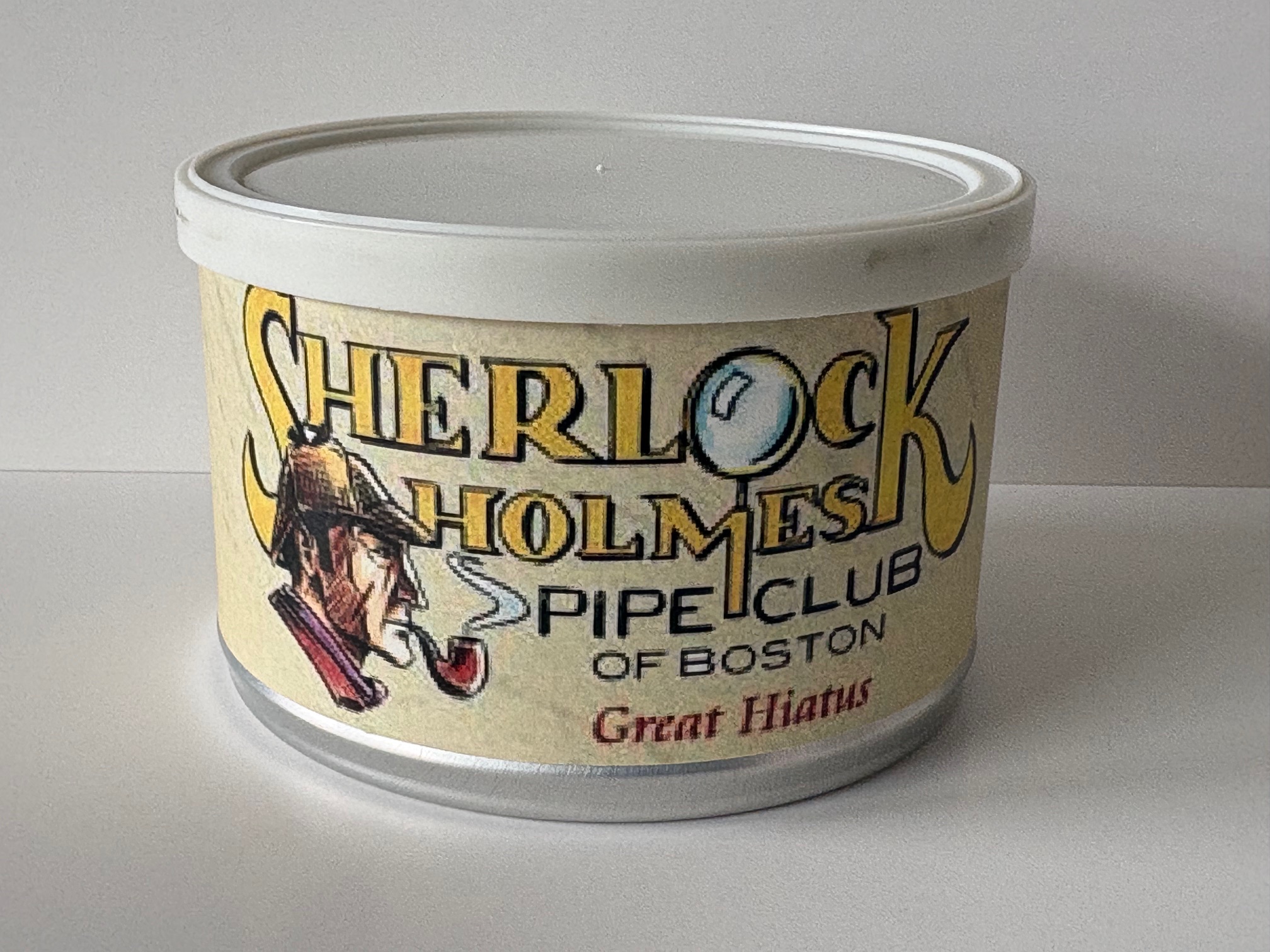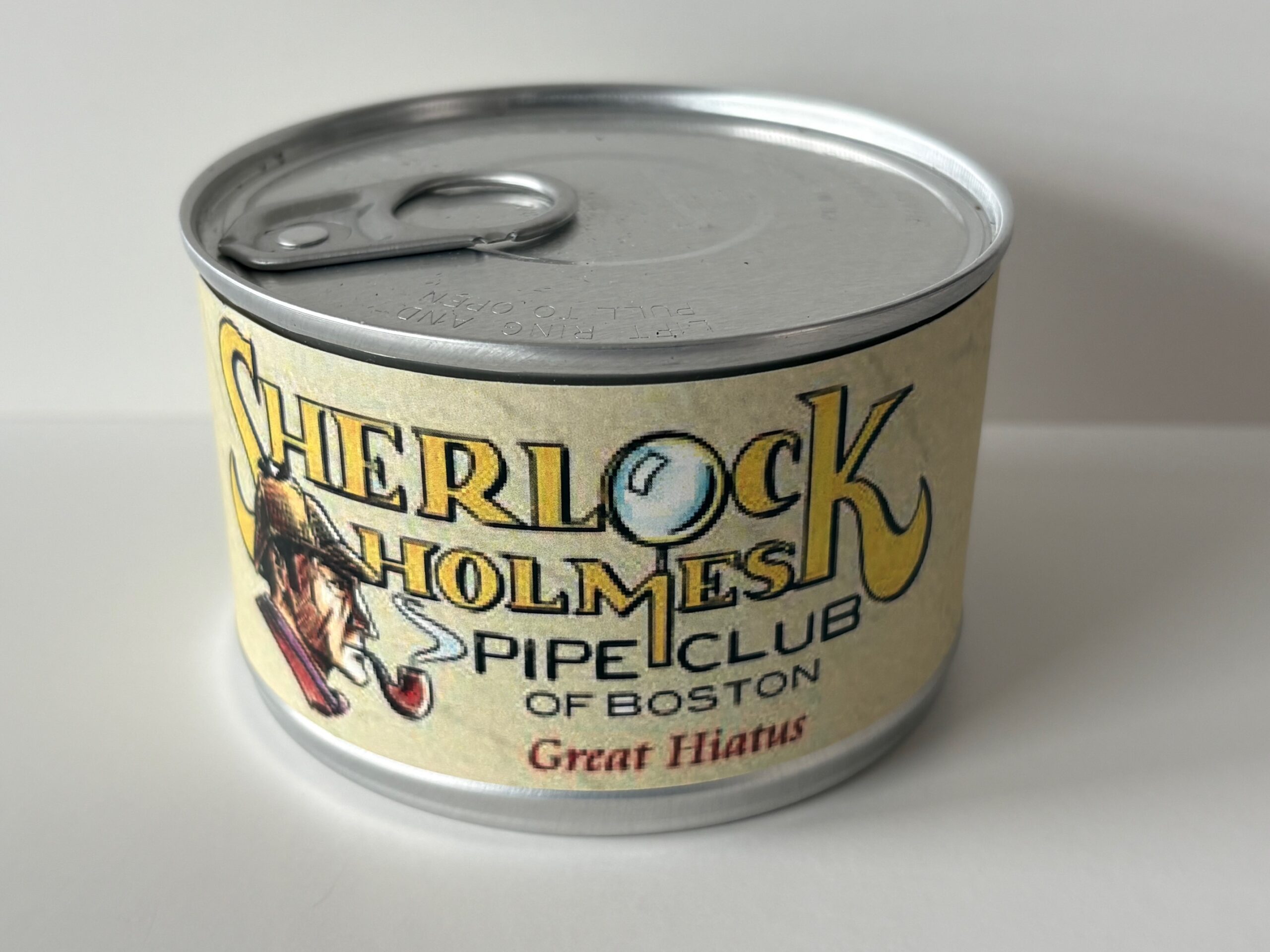 Unopened 2 ounce tin of 2009 Sherlock Holmes Pipe Club of Boston Great Hiatus.