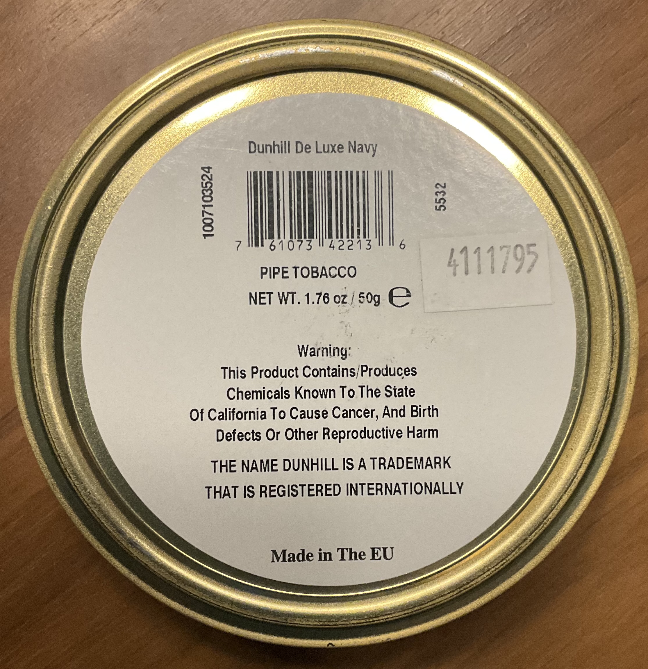 1 50 g Dunhill De Luxe Navy Rolls. Well sealed. Roughly 12 plus years old.