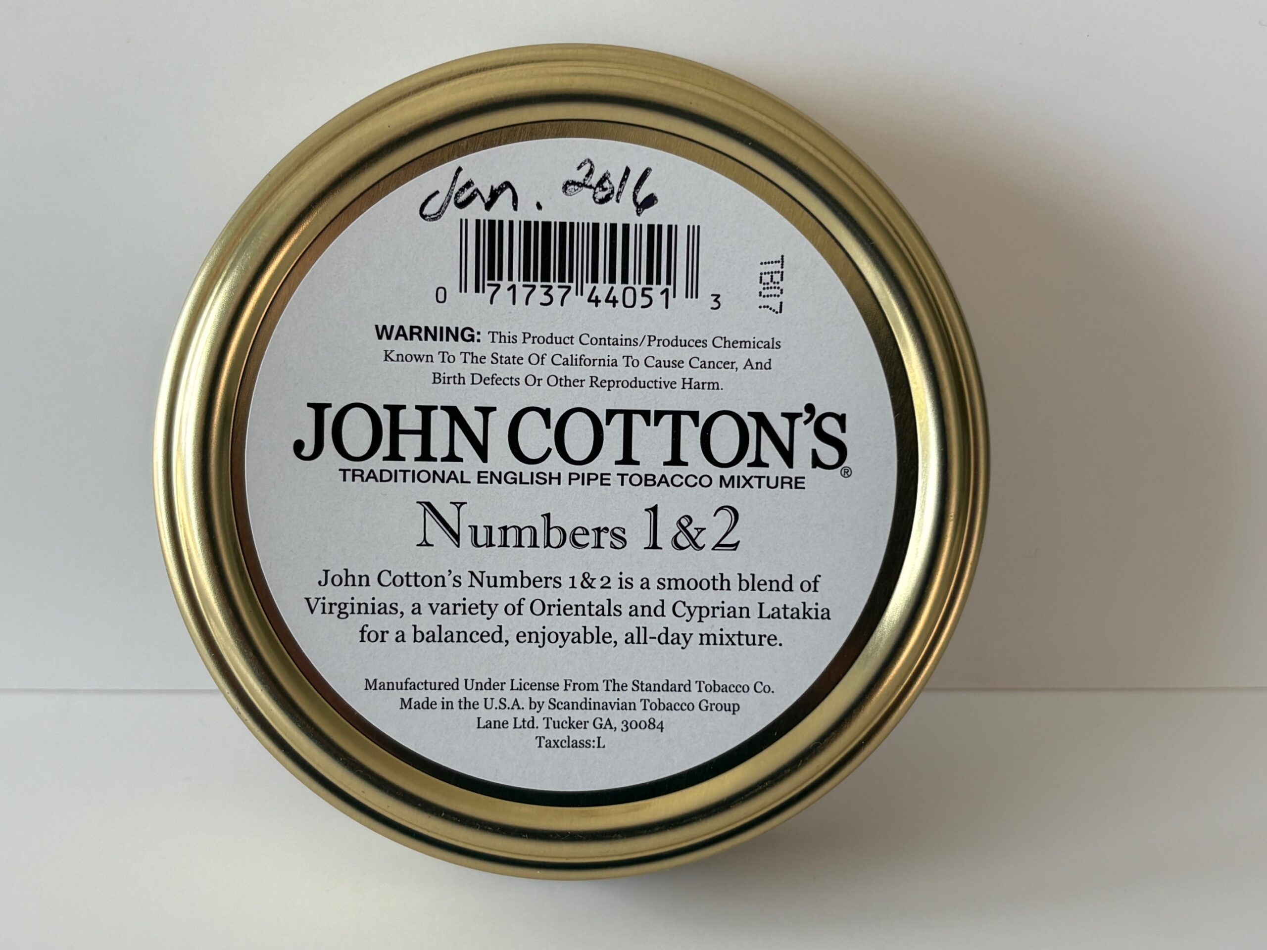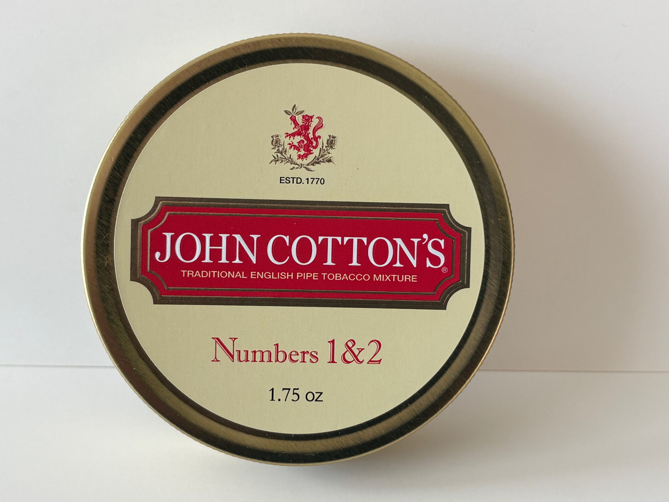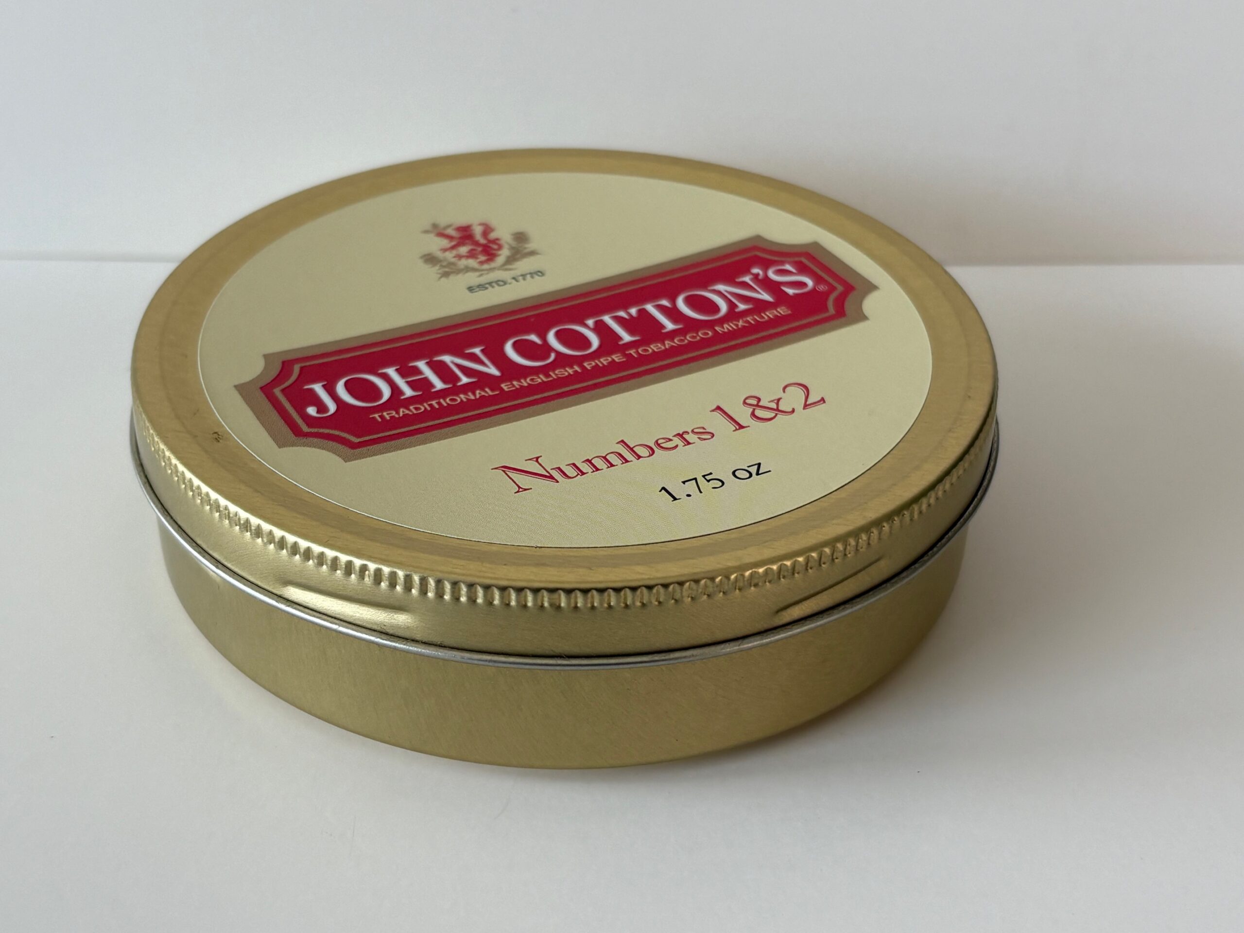 Unopened 1.75 ounce tin of 2016 John Cotton's Numbers 1 & 2.