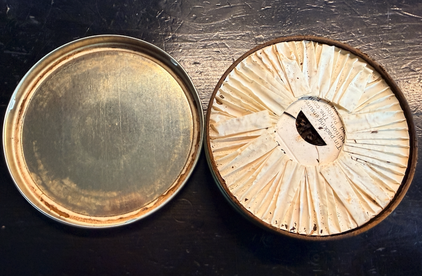 Rare. Full tin. Made in the U.K. Tin has shelf wear. Tin contents are undisturbed, but seal is compromised. Will require rehydration.