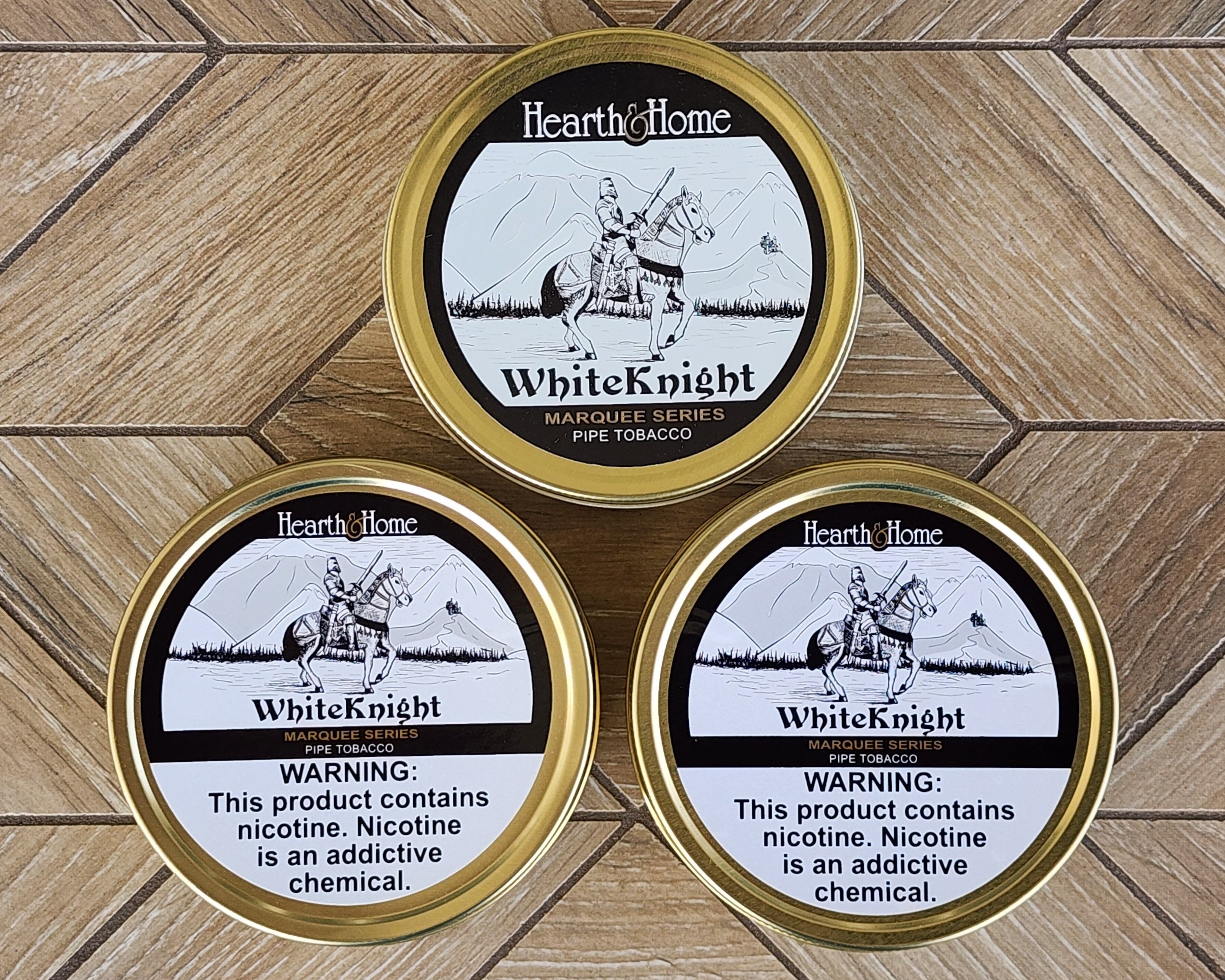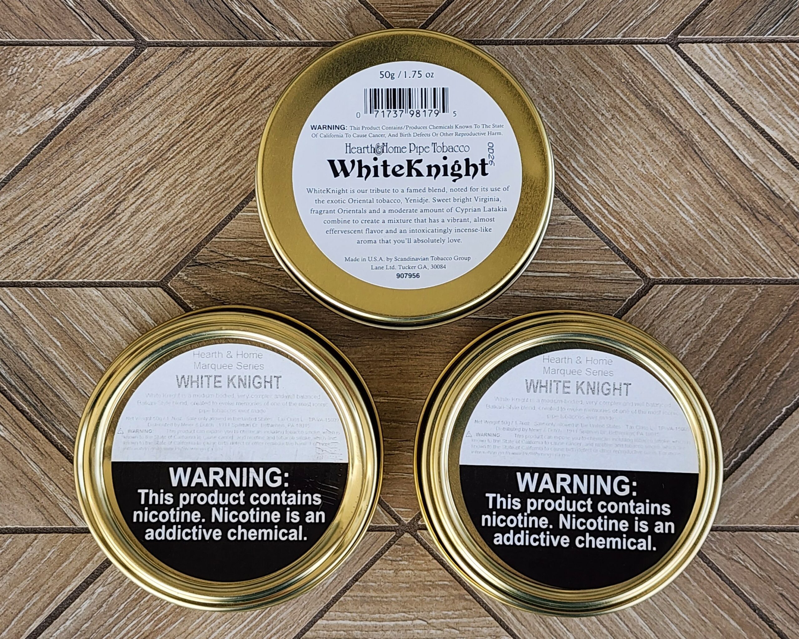 This auction is for three 50g tins of Hearth & Home - White Knight , all purchased in July 2018. One of the tins is slightly dented in on the bottom, but still maintains its seal.