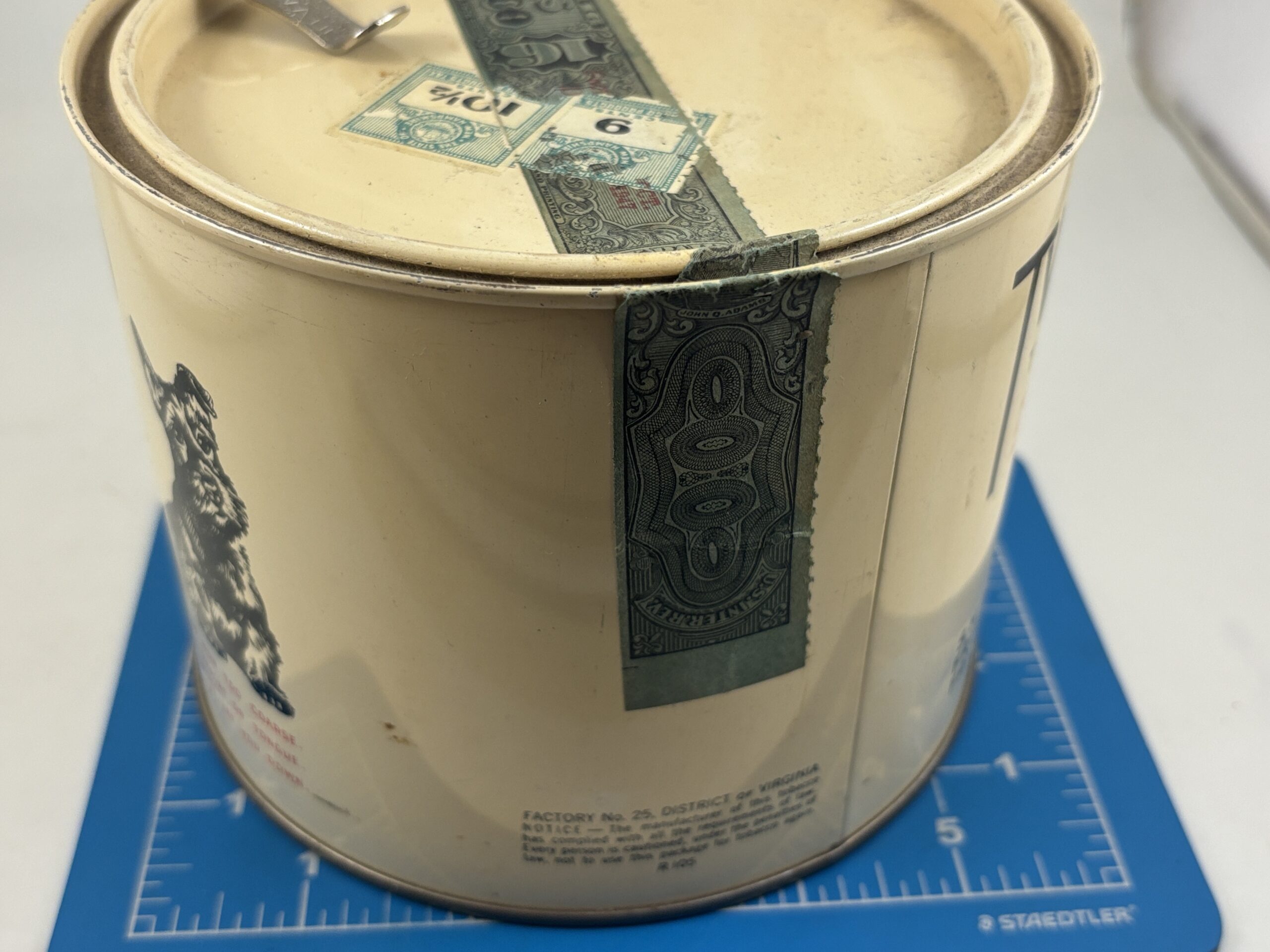 Vintage Sealed Tweed Tobacco 16oz. Lev-A-Lift Opener Top Tin.