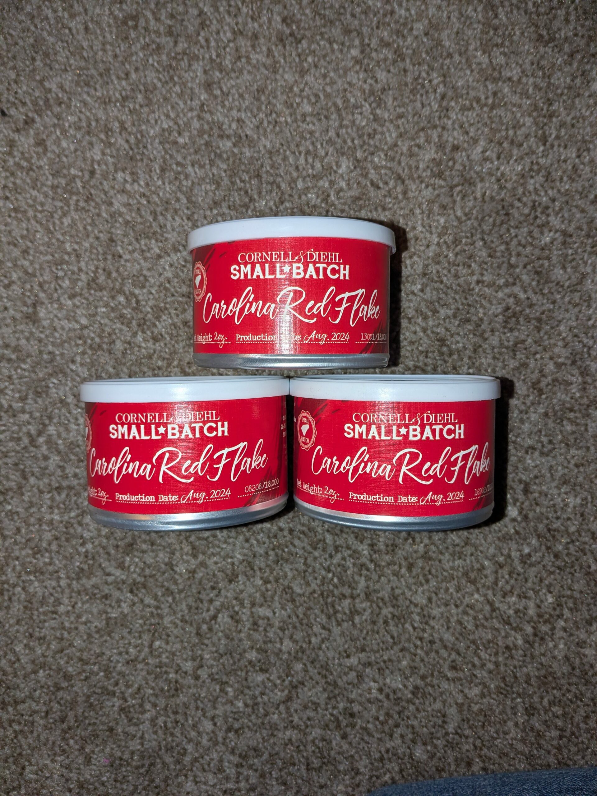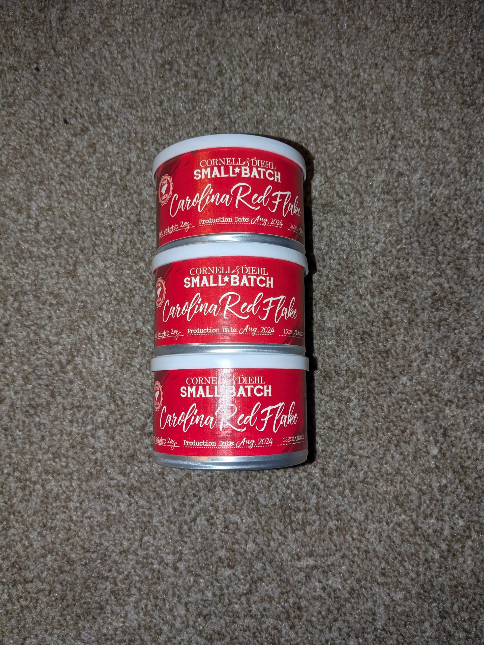 This auction is for 3 SEALED TINS of Carolina Red Flake 2024 by Cornell and Diehl.