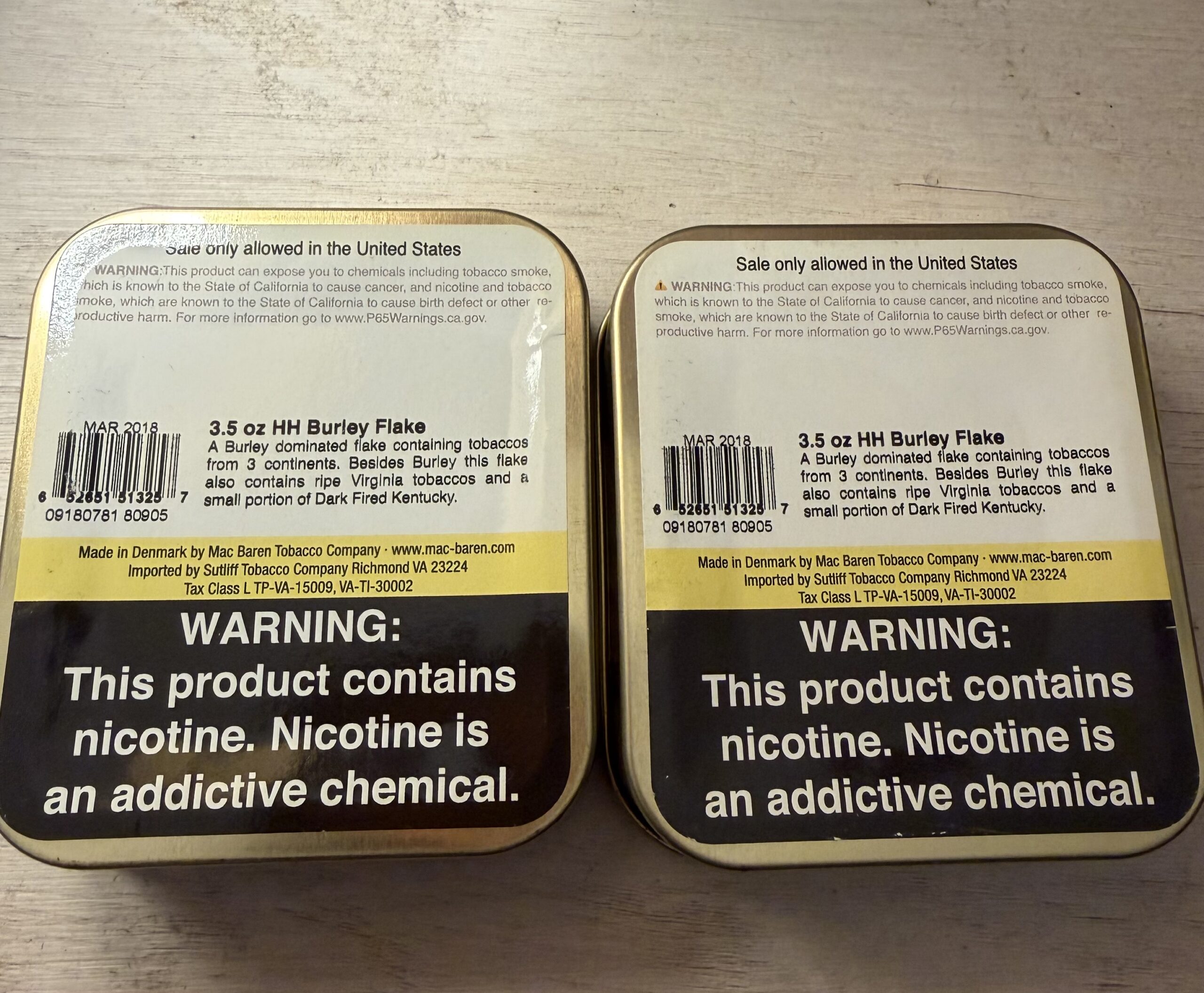 Mac baren HH burley flake 2018 (2) 3.5 oz tins