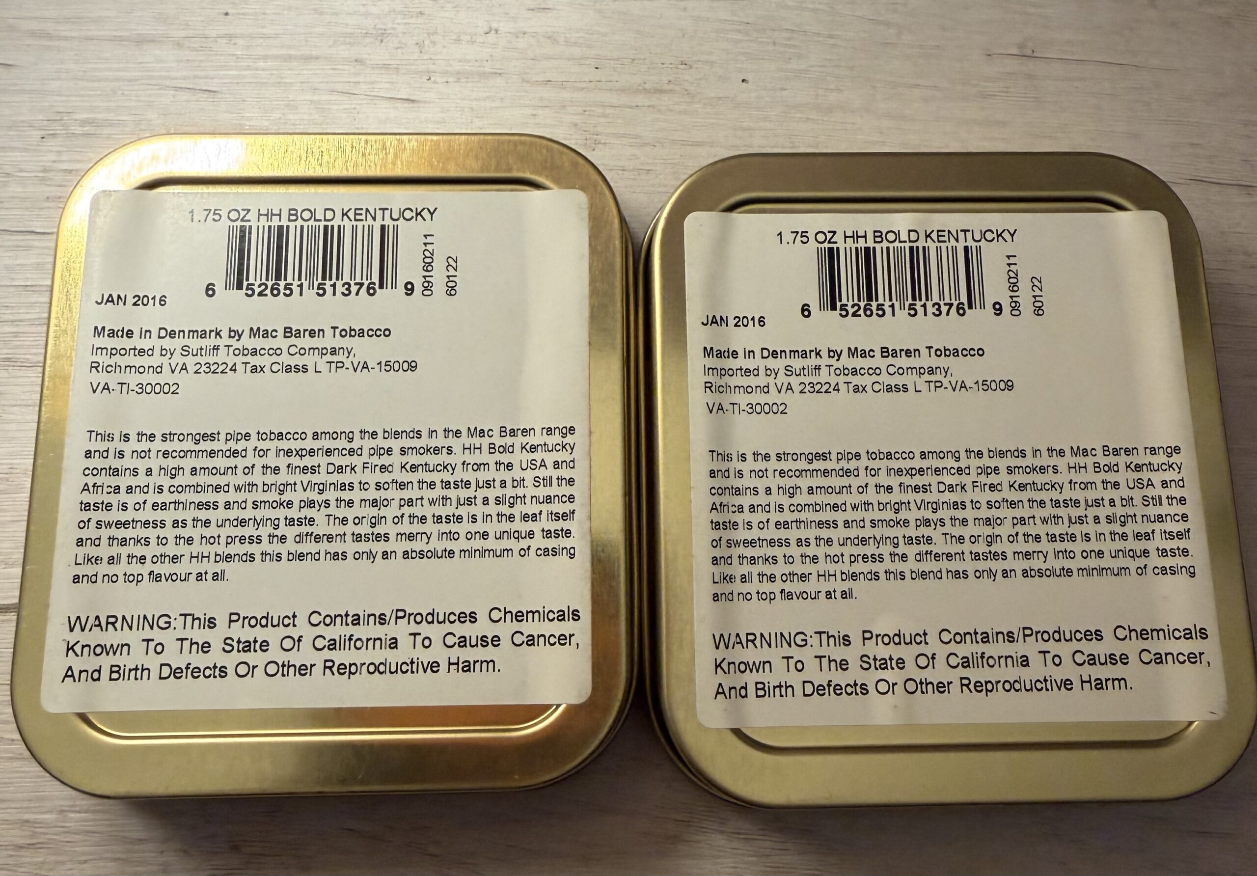 Mac baren HH bold Kentucky (2) 1.75 oz tins Jan 2016