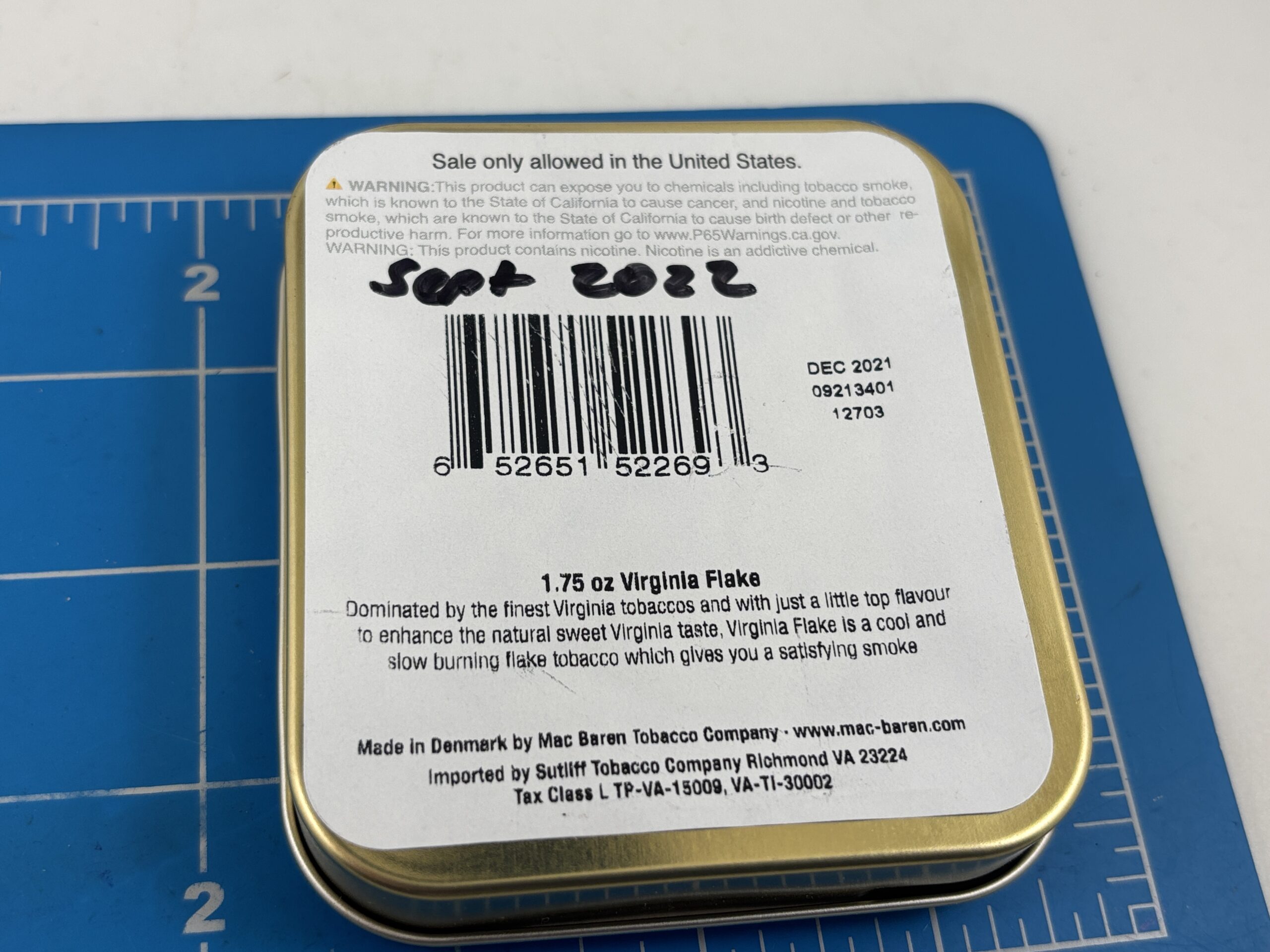 Excellent Sealed 2022 Mac Baren Virginia Flake 1.75oz. Tin