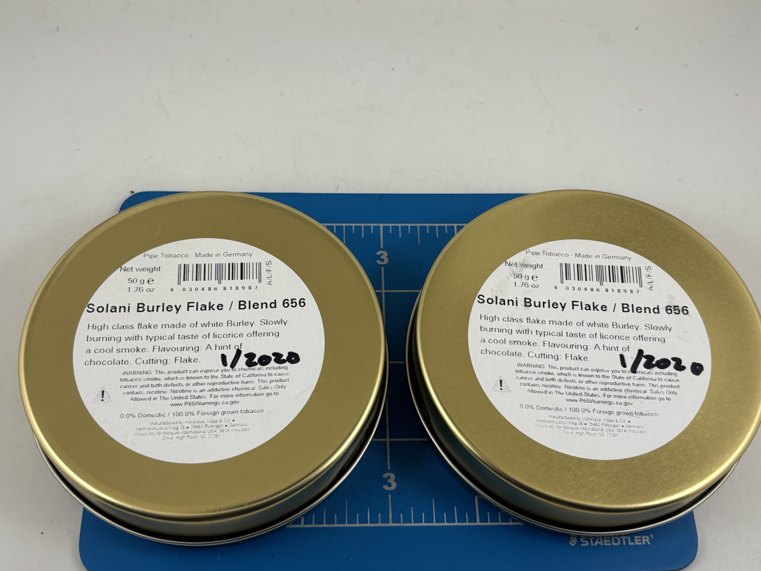 Lot of 2 Excellent Sealed 2020 Solani Aged Burley Flake 50g. Tins.