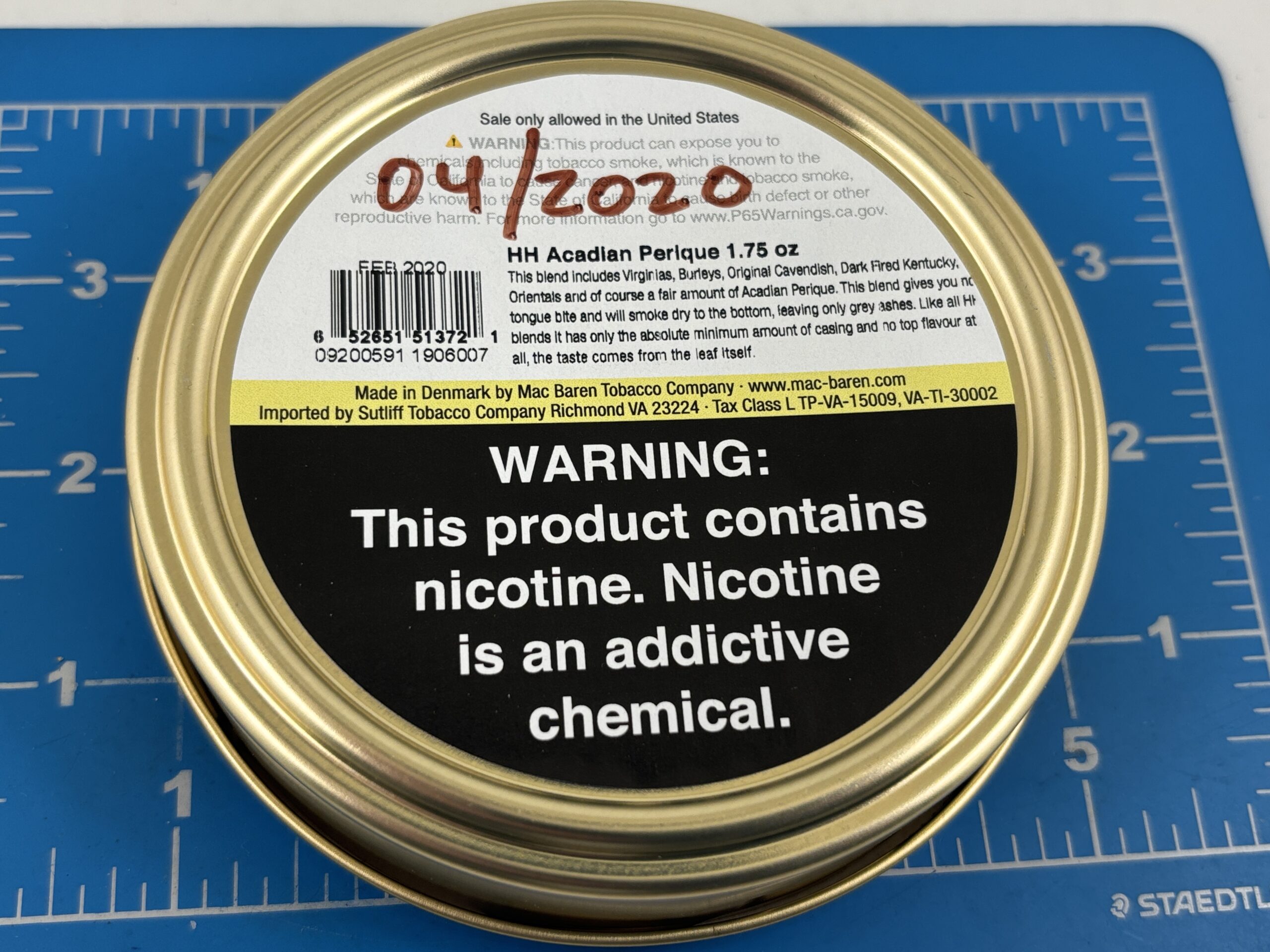 Excellent Sealed 2020 Mac Baren HH Acadian Perique 1.75oz. Tin.