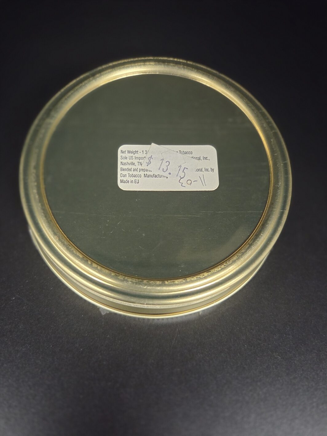1 x 50g tin. Expect mild, golden Virginias mixed with a mild black cavendish. A fresh flavor of exotic fruits and a touch of bourbon vanilla is added to make this an extraordinarily mild blend. New and unopened. Sealed for freshness and kept in a temp controlled room.
