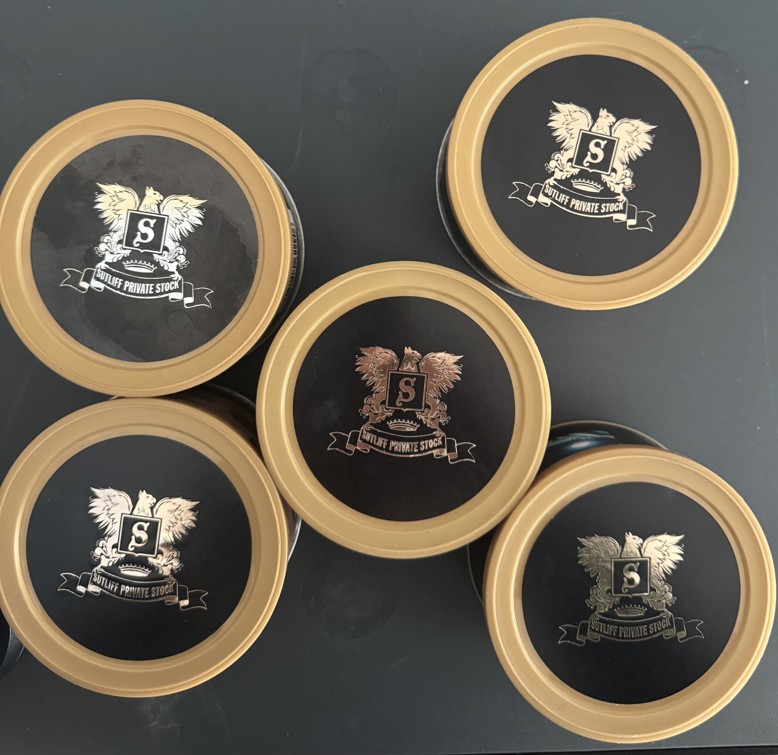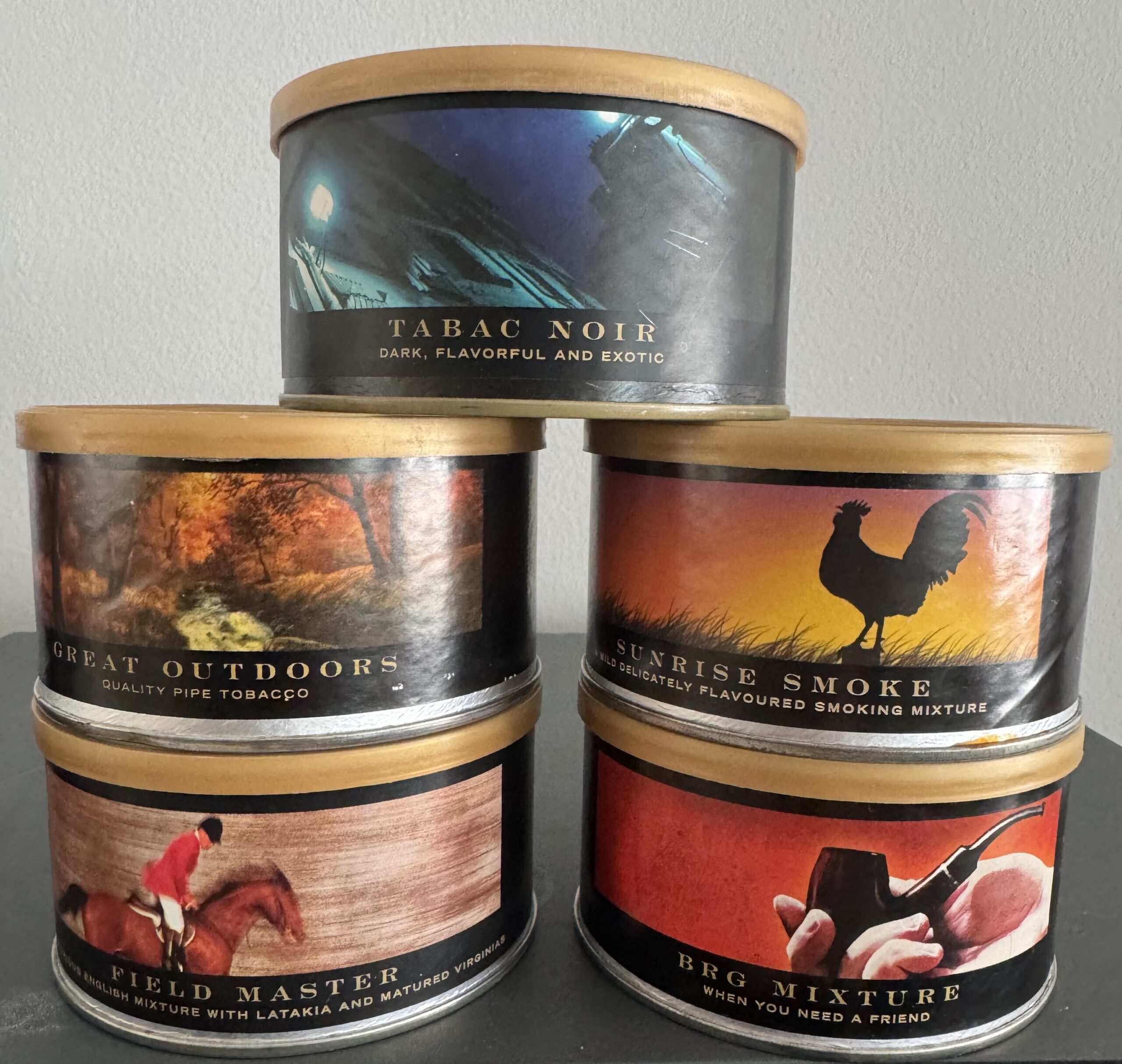 5 1.5 oz different blends of Sutliff Private Stock. Not dated but quite sure they are at least 10-15 years old. No dates on tins.