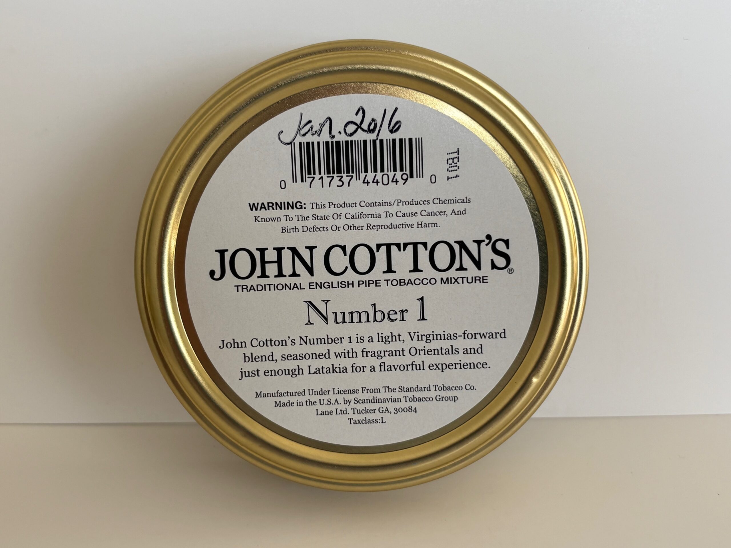 Unopened 1.75 ounce tin of 2016 John Cotton's Number 1.