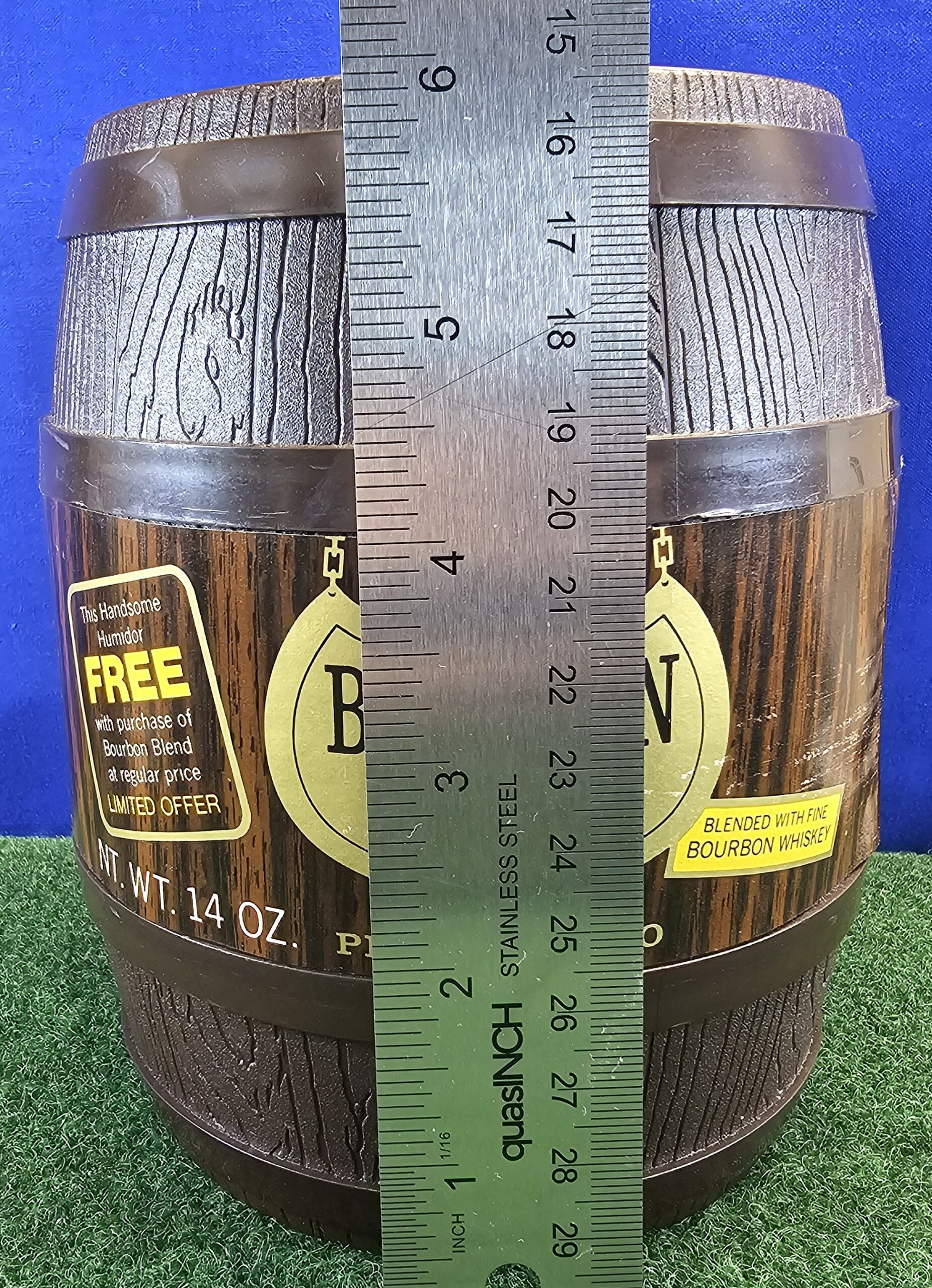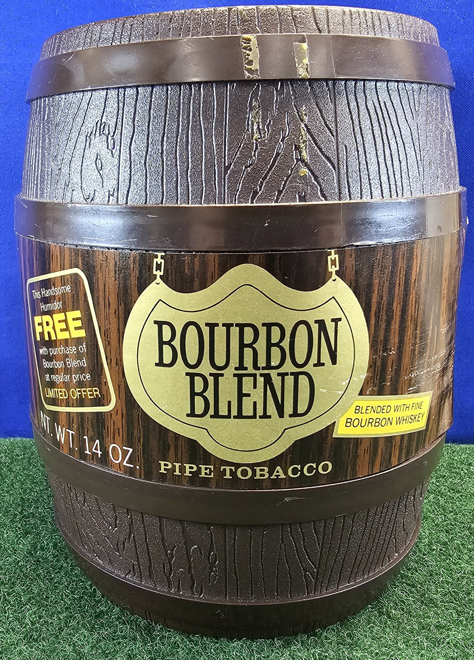 Got to love great marketing! This bourbon blend tobacco comes with a plastic barrel. You can smell the sweet aroma when you lift the lid, but it has never been opened past that.