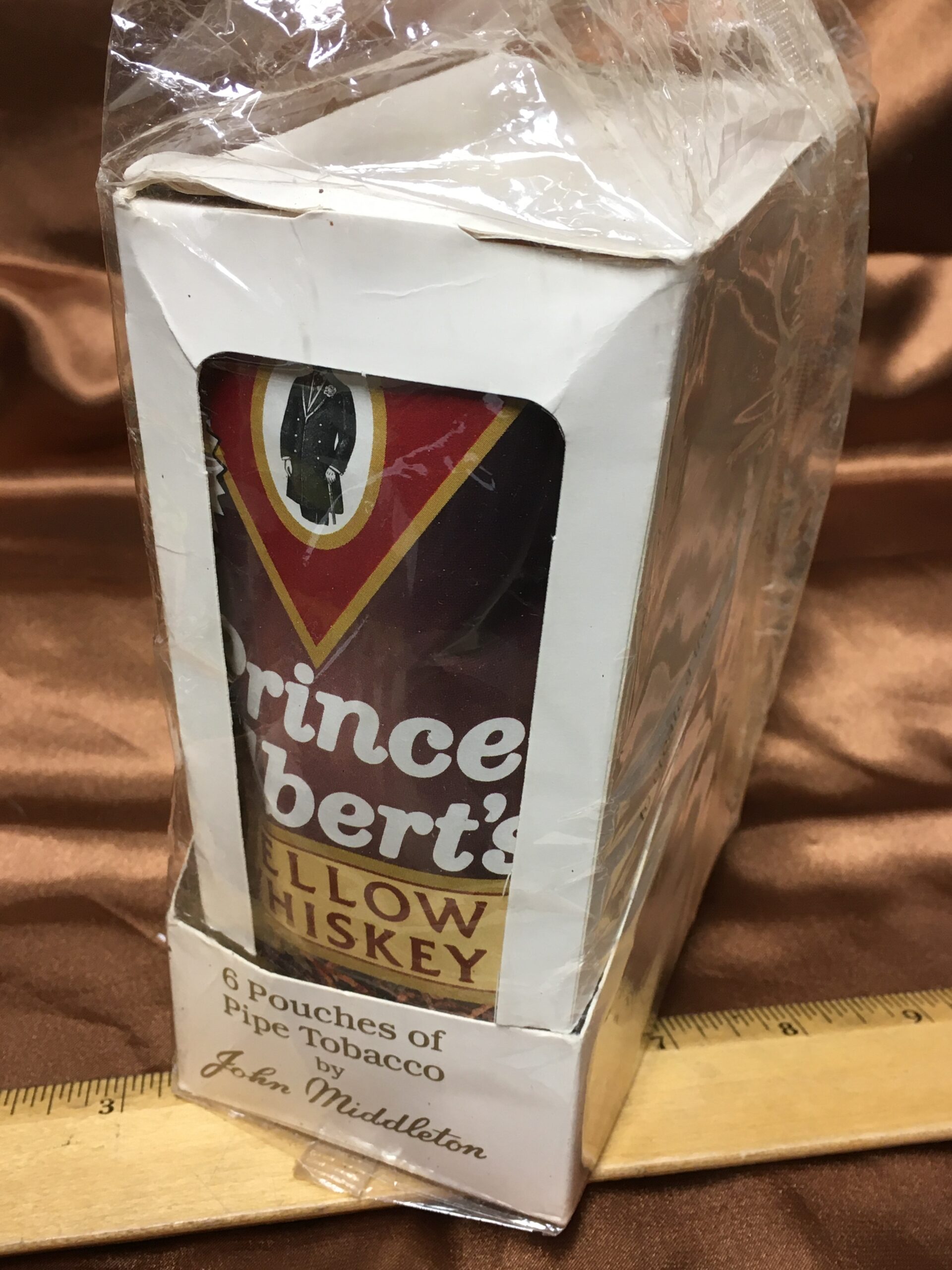 Vintage PRINCE ALBERT'S MELLOW WHISKY Pipe Tobacco (1970s?) by JOHN MIDDLETON - Sealed Display of Six (6) 1.5oz Pouches