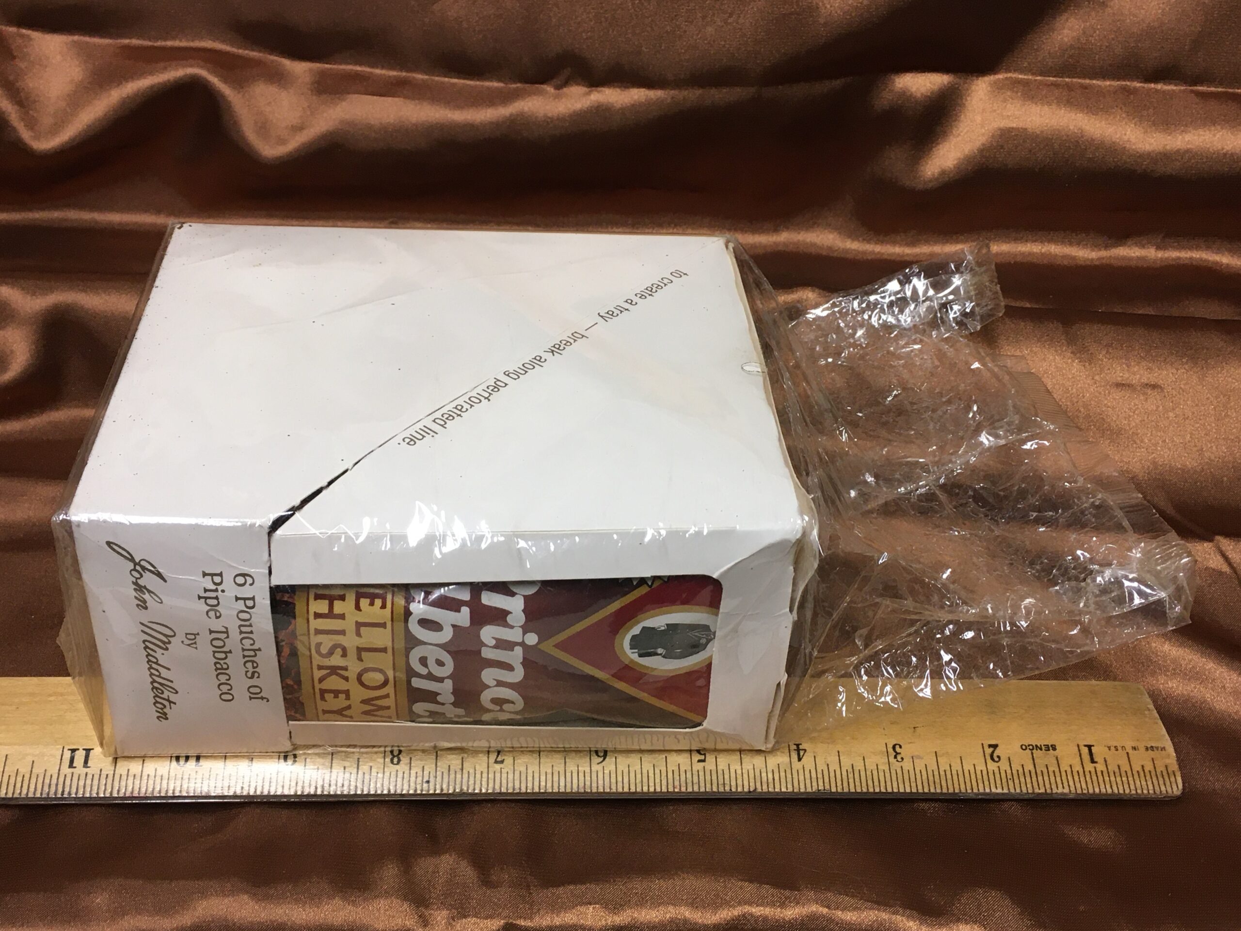 Vintage PRINCE ALBERT'S MELLOW WHISKY Pipe Tobacco by JOHN MIDDLETON - Sealed Shelf Display containing Six (6), 1.5oz Pouches.