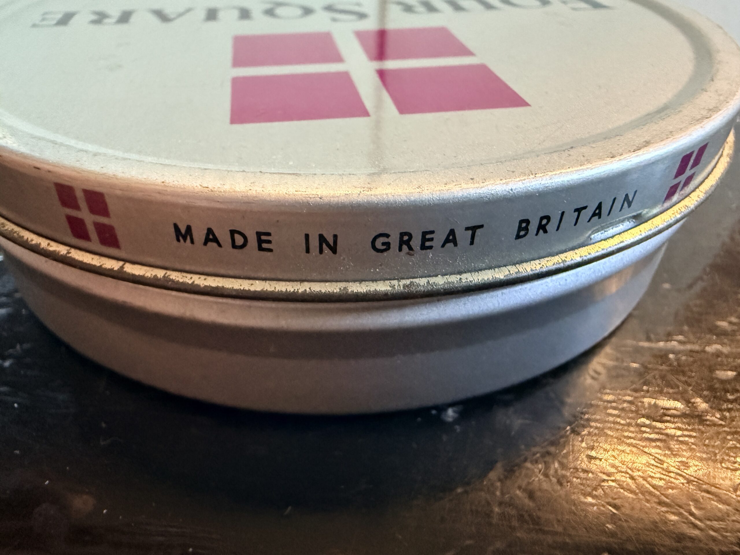Up for auction is a 1960's era Dobie's Four Square Curlies full tin. Made in Great Britain. The tin has shelf wear. The seal is compromised, but contents are undisturbed. Will require rehydration.